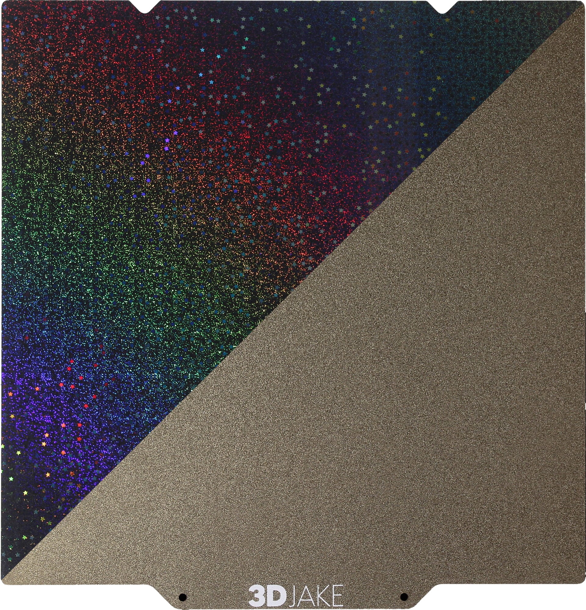 Placa de construcție PET/PEI Magic de la 3DJAKE este o placă de construcție flexibilă, dublu acoperită, cu bază magnetică. O parte a plăcii este fabricată din material PET cu un model strălucitor de curcubeu, care oferă obiectelor tipărite efecte vizuale unice. Cealaltă parte are un strat acoperit cu pulbere de PEI pentru o aderență excelentă și o îndepărtare ușoară a modelelor.