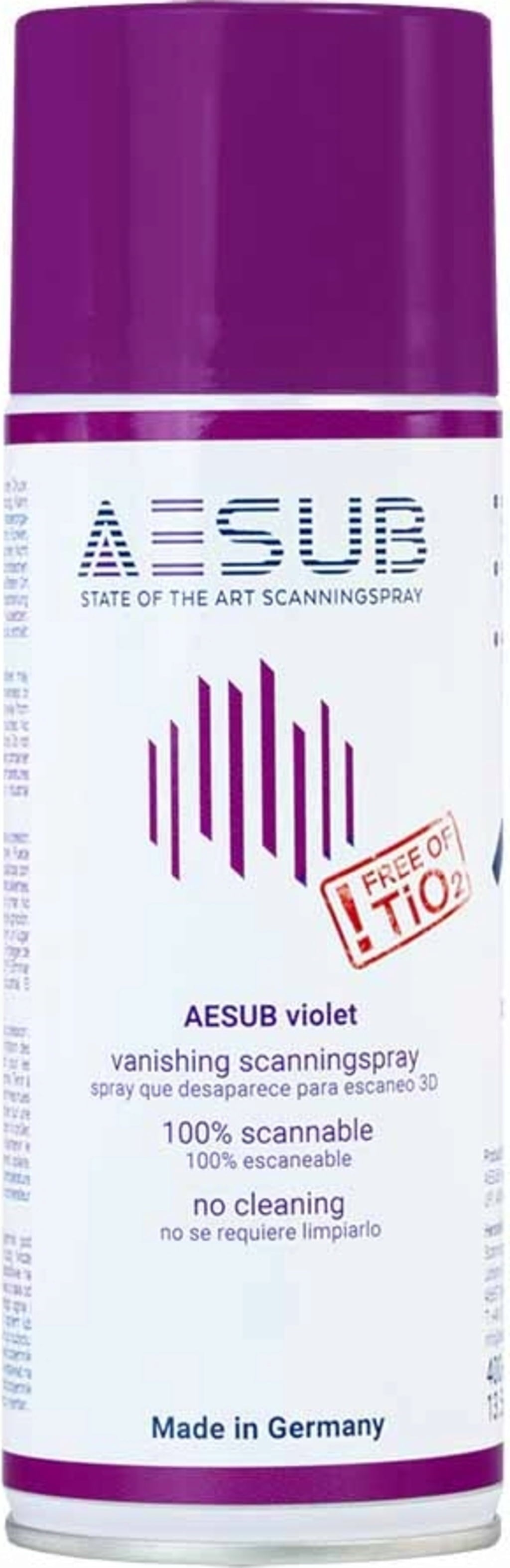 AESUB Violet a fost creat special pentru a satisface cerințele metrologiei 3D moderne și optimizat în consecință. Spray-ul de scanare auto-evaporant și de lungă durată creează un strat uniform și subțire, ce elimină reflexiile și suprafețele transparente sau lucioase de încredere.