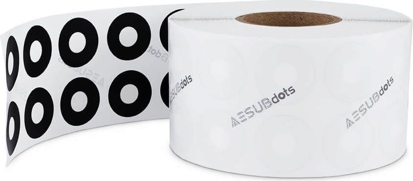 AESUBdots black&white easy remove sunt puncte de referință pentru scanere 3D cu lumină structurată. AESUBdots sunt autoadezive, au o suprafață de lipire cu aderență puternică și sunt livrate sub formă de rolă.
