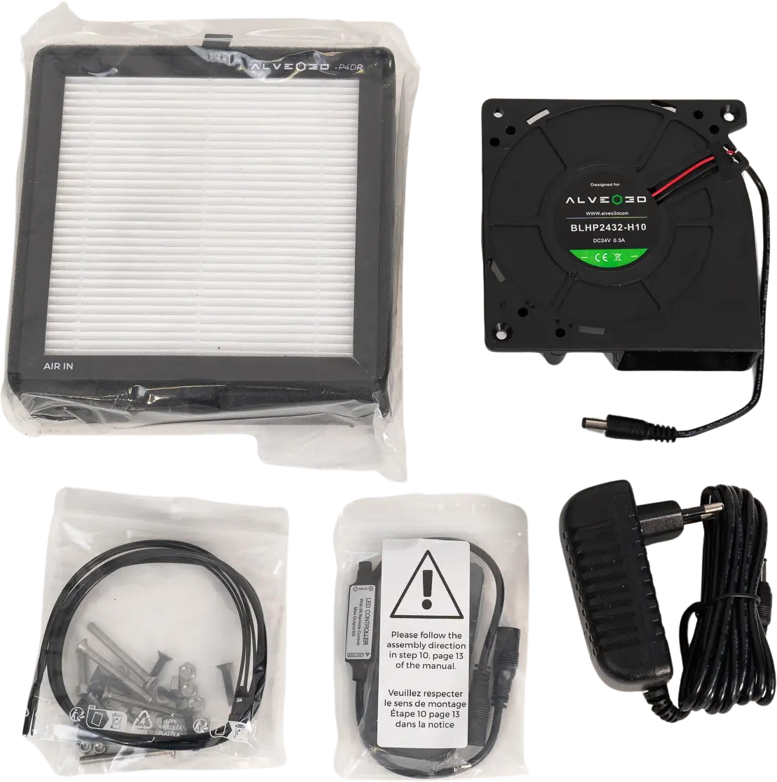 Sistemul urmeaza un concept deschis si modular: partile carcasei sunt imprimate chiar de utilizator folosind fisierul STL pus la dispozitie gratuit, in timp ce kitul include toate componentele functionale relevante, precum filtre, ventilatoare, garnituri, suruburi si magneti.