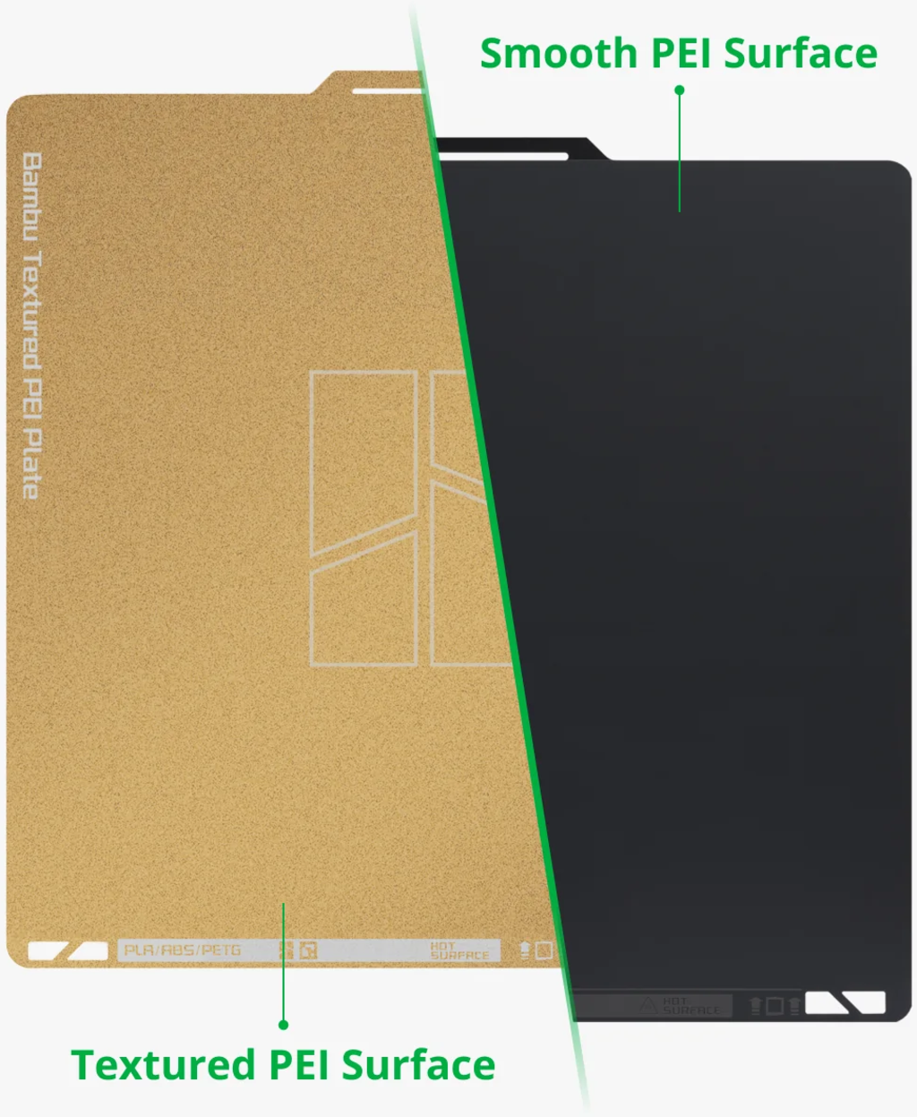 După cum sugerează și numele, placa de construcție Dual Texture dispune de două suprafețe diferite pe o singură placă. În timp ce o parte este netedă ca placa PEI standard, cealaltă parte are o suprafață texturată. Partea netedă este ideală pentru materiale care necesită o suprafață netedă, iar partea texturată este ideală pentru materiale cu aderență redusă sau pentru piese cu geometrie complexă.