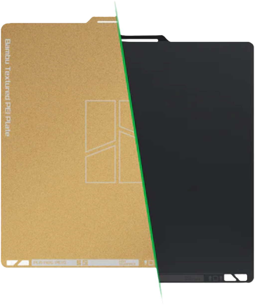 Dual Texture PEI Plate de la Bambu Lab combină avantajele plăcii PEI netede și texturate pentru a oferi o flexibilitate și mai mare în proiectele tale de imprimare 3D.