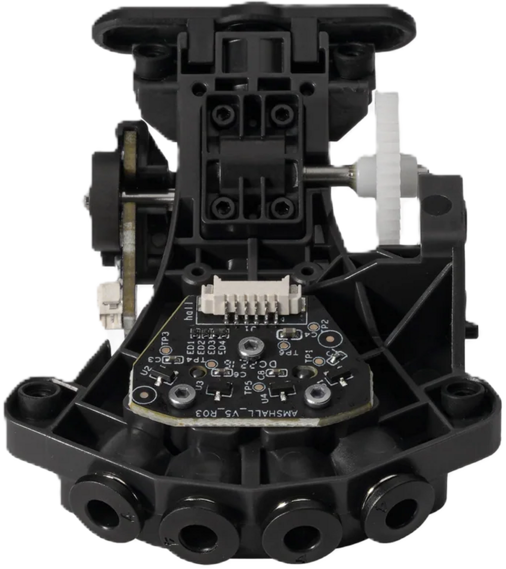 Unitatea Bambu Lab AMS Internal Hub Unit controlează selecția filamentului dorit în sistemul AMS și alimentează filamentul de la AMS la imprimantă. De asemenea, unitatea se ocupă de detectarea vitezei la transportul filamentului și de detectarea filamentului pentru monitorizarea fluxului de material.