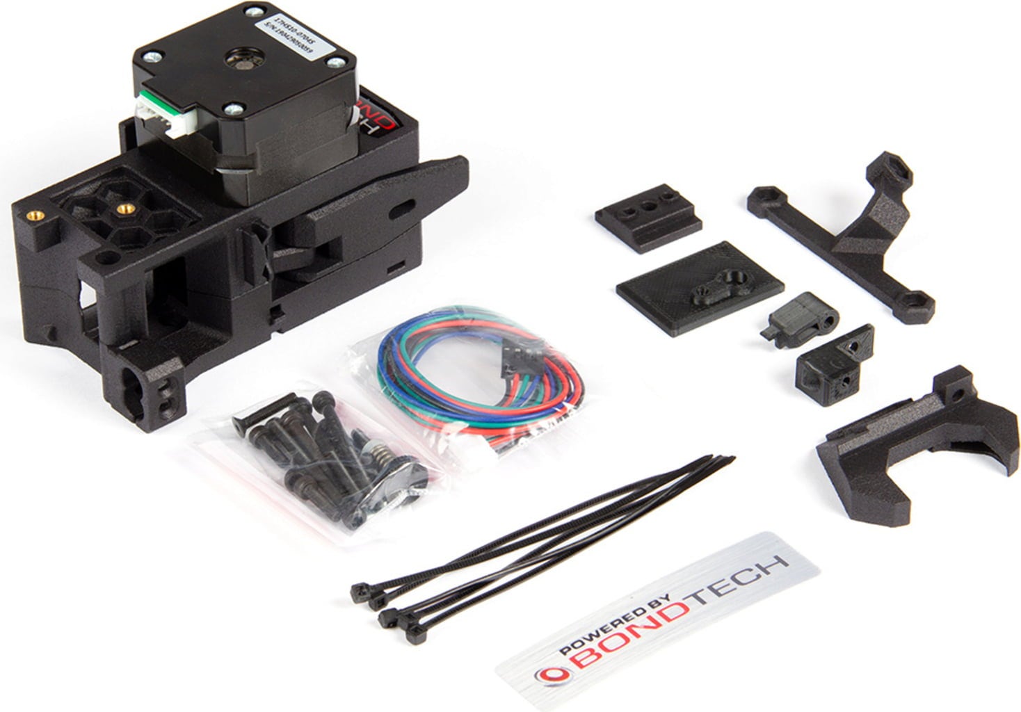 Acest kit conține doar piesele necesare pentru a transforma extruderul actual la designul popular. Se bazează pe extruderul BMG (Bondtech Mini Geared) cu un raport de transmisie de 3:1 pentru o mai bună precizie și rezoluție, precum și cu o geometrie optimizată pentru răcirea radiatorului și carcasa profesională imprimată 3D prin SLS.