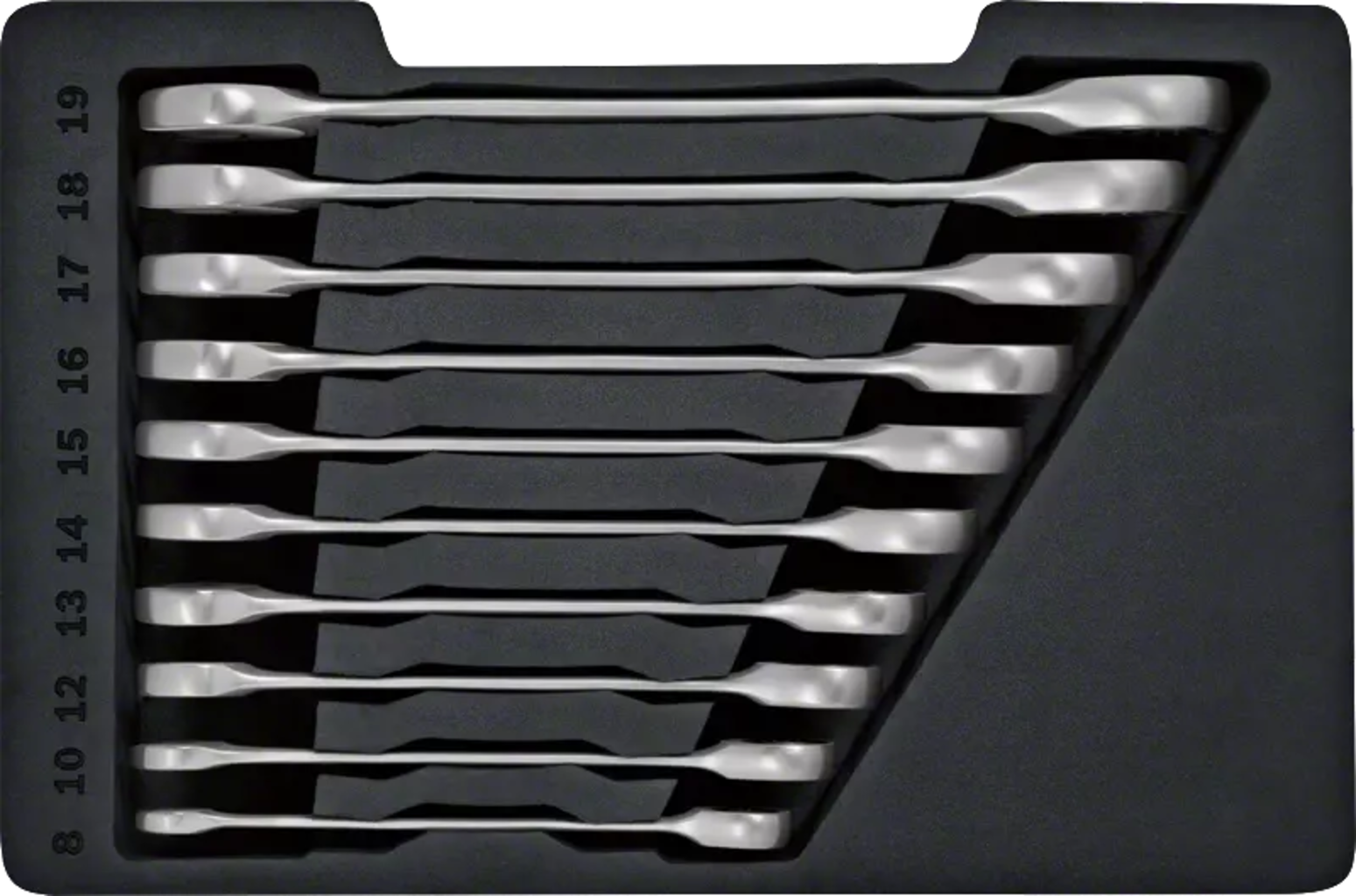 ► Setul cu cele mai uzuale 10 dimensiuni de chei este livrat într-o inserție parțială practică pentru depozitare ordonată și transport ușor. Compatibil cu sistemul de mobilitate Bosch L-BOXX.