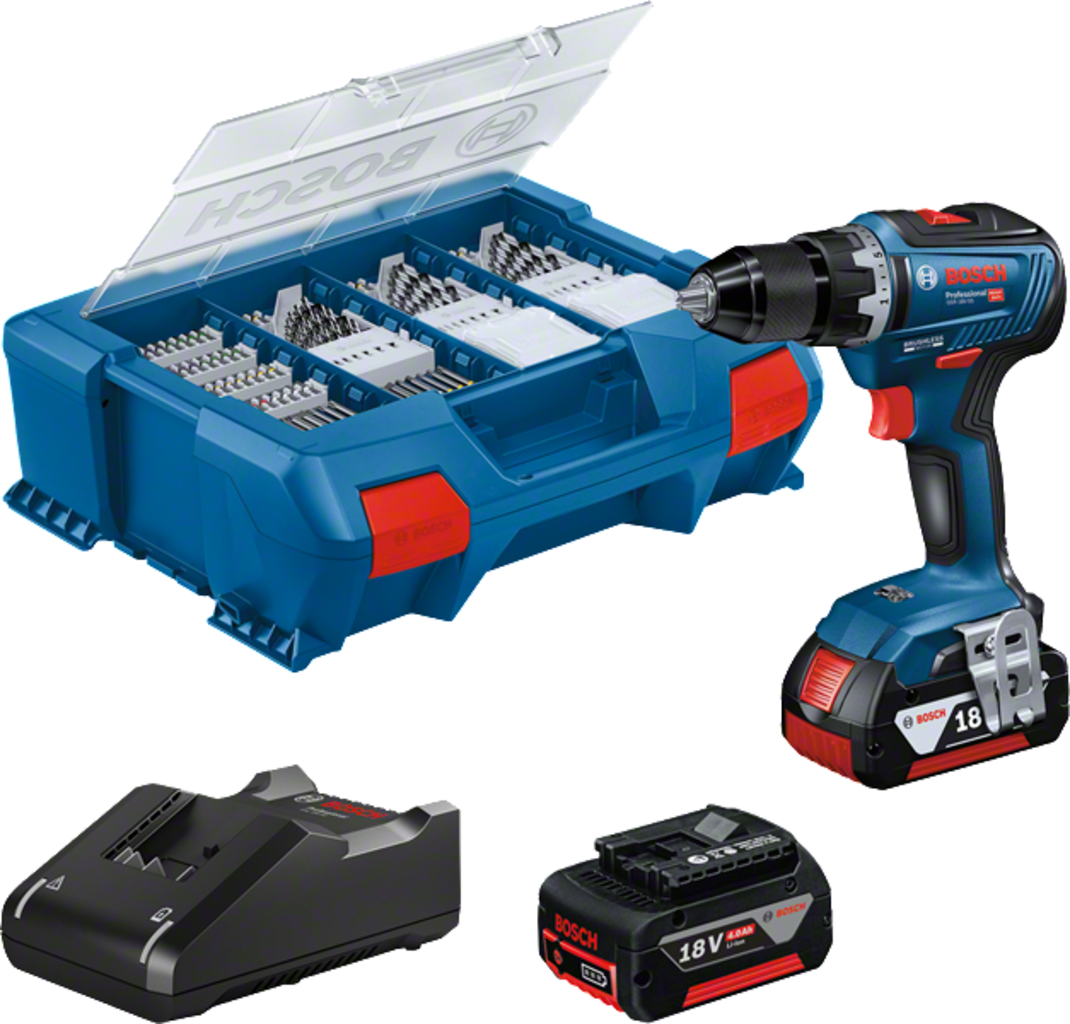 1 x GSR 18V-55 Akku-Bohrschrauber 2 x Acumulator GBA 18V 4,0 Ah 1 x Încărcător GAL 18V-20 1 x Set de accesorii de 82 de piese 1 x Cutie L-Case Pick & Click |