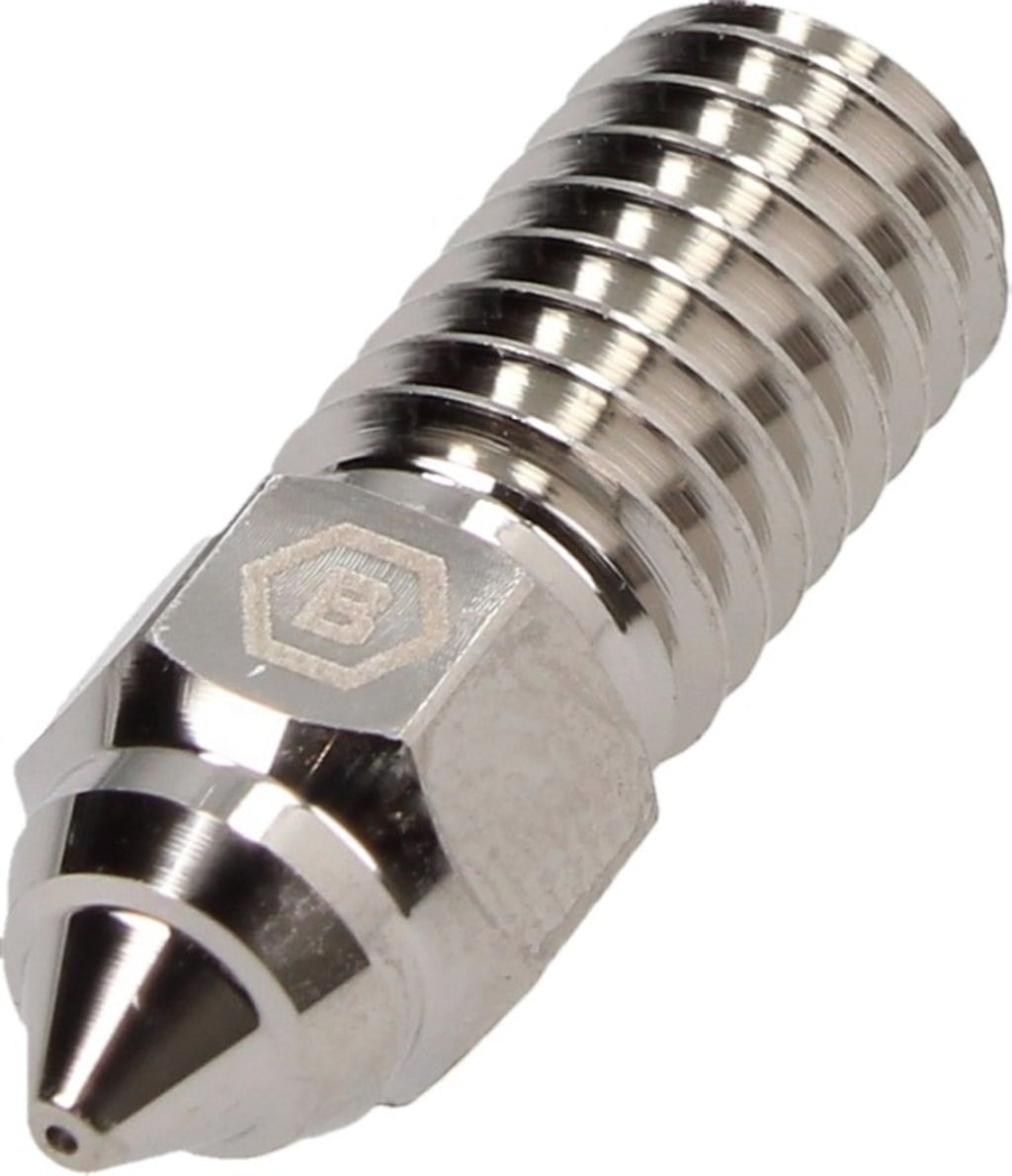 Duza Plated Copper combină conducerea excelentă a căldurii a cuprului și, datorită stratului de acoperire din nichel, este de asemenea extrem de rezistentă. Astfel, sunt combinate două dintre cele mai importante proprietăți într-o singură duză și este posibilă imprimarea filamentelor abrazive cu viteză mare.