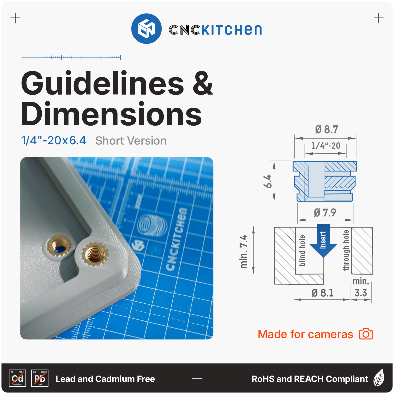 CNC Kitchen Insert filetat 1/4"-20 UNC, 1/4"x12,7 (20 bucăți)