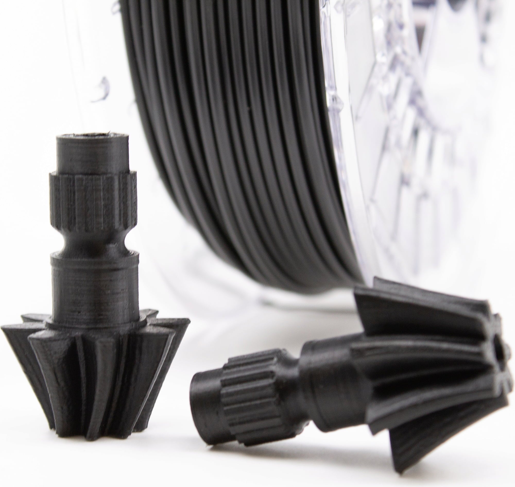 Haideți să comparăm PA cu PLA, care este încă cel mai popular material de pe piață. PLA este acid polilactic cu o temperatură de rezistență la deformare termică (HDT) de aproximativ 45 °C. Nu este rezistent la temperaturi mari și este fragil. Deși este ușor de imprimat, îi lipsește funcționalitatea reală pentru cele mai multe aplicații. PA (poliamidă), pe de altă parte, are un HDT de 145 °C, fiind foarte rezistent la temperaturi ridicate și durabil. Acest lucru îl face un material perfect pentru utilizatorii profesioniști, pentru a crea printuri de lungă durată.