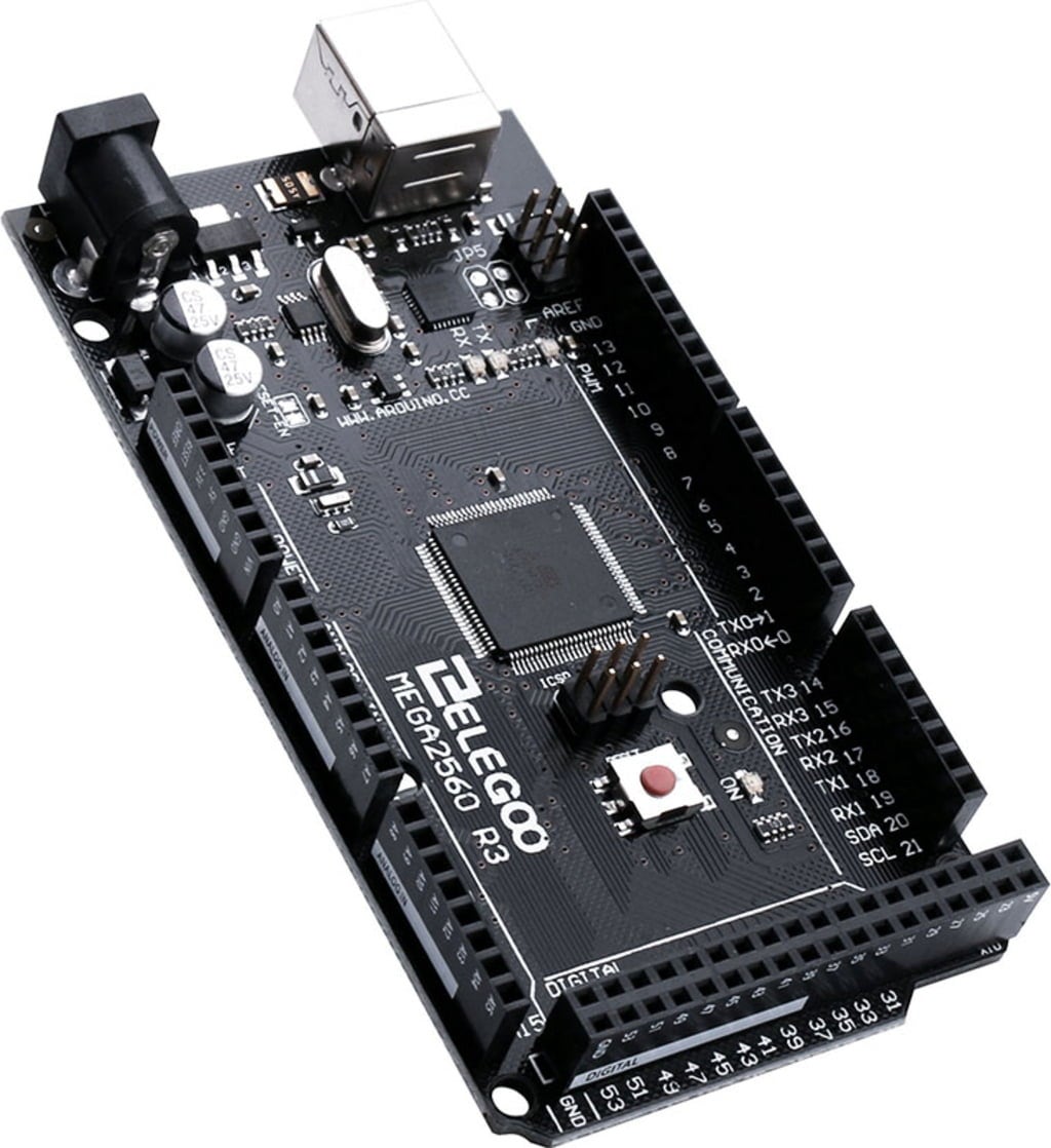 ATmega2560 de la Elegoo este preprogramat cu un bootloader, ceea ce permite încărcarea de coduri noi pe un dispozitiv fără a necesita un programator de hardware extern. De asemenea, dispune de un spațiu de memorie Flash de 256 KB pentru coduri, 8 KB SRAM și 4 KB EEPROM.