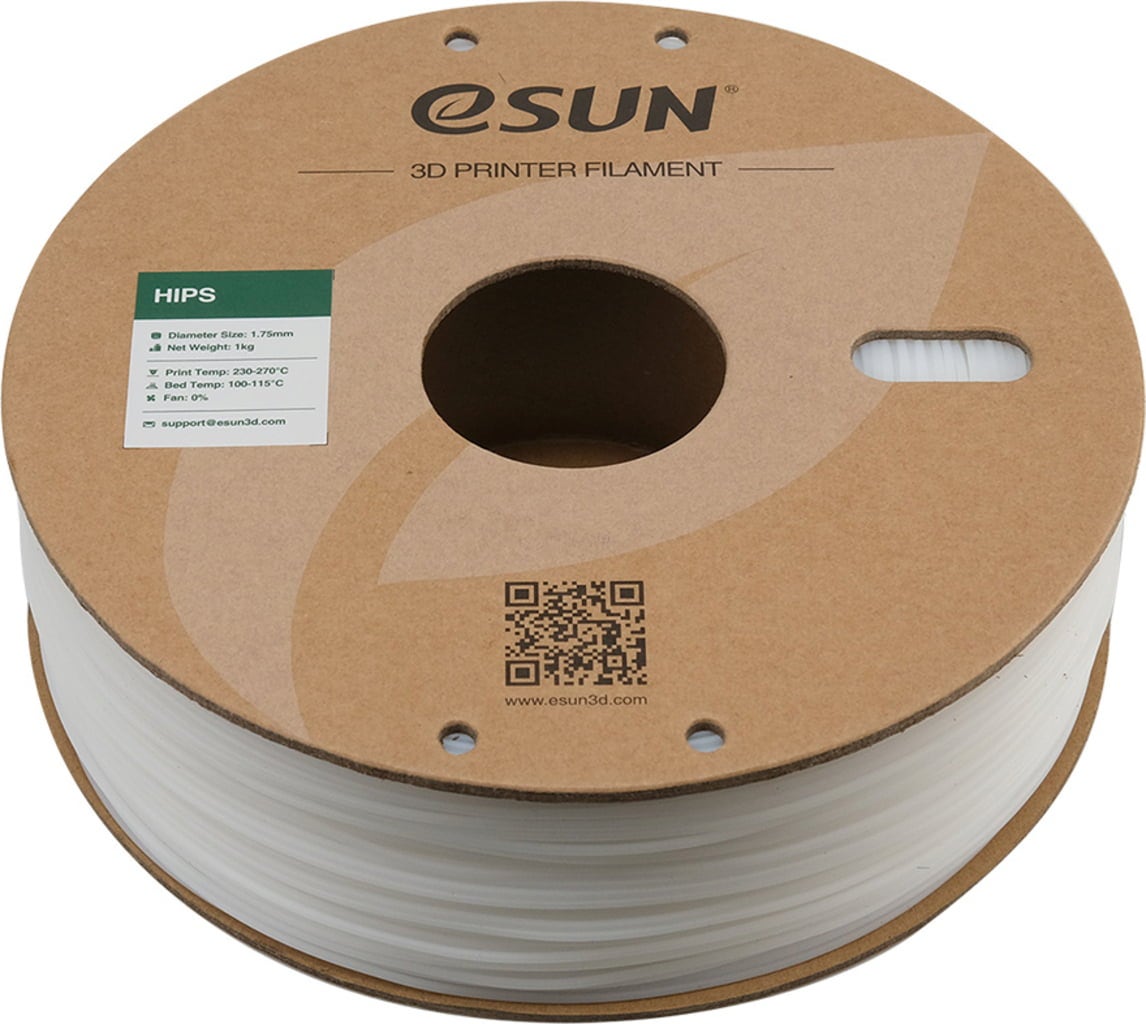 eSUN HIPS (Polistiren de mare impact) este un copolimer sintetic. Este puternic, durabil, rezistent la căldură și solubil în limonen, un solvent ușor disponibil obținut din coaja de lămâie.