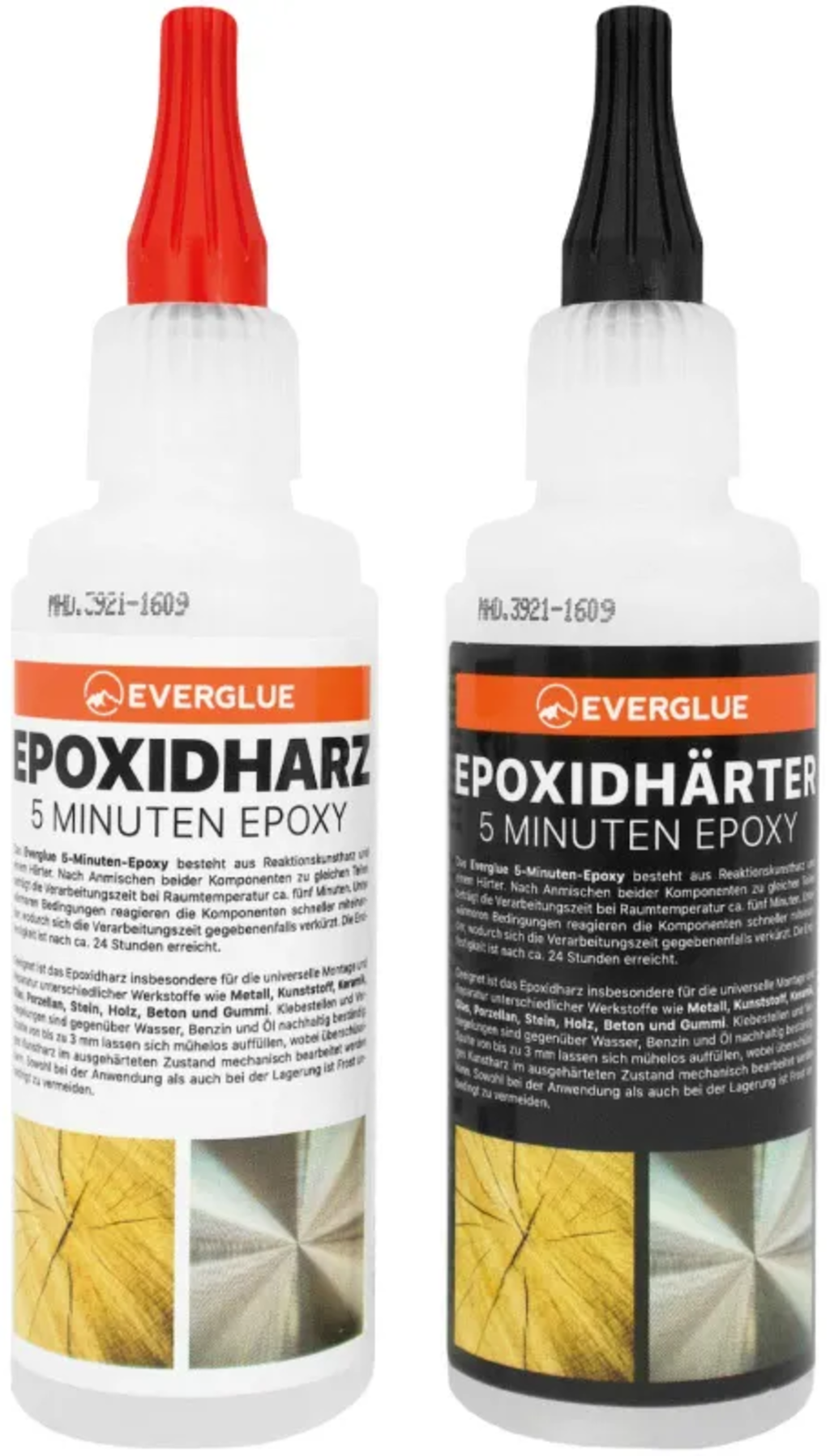 5-Minute Epoxy este un adeziv bicomponent pentru lipirea și etanșarea rapidă a diferitelor materiale (de exemplu, metal, plastic, ceramică, sticlă, porțelan, piatră, lemn, beton și cauciuc). Setul este compus din două componente, rășină sintetică reactivă și întăritor, care se amestecă în părți egale. Adezivul este transparent și fără solvenți, iar timpul de prelucrare este de aproximativ cinci minute. Legăturile lipite devin rezistente la îmbătrânire, intemperii și vibrații; există o rezistență durabilă la apă, benzină și ulei.