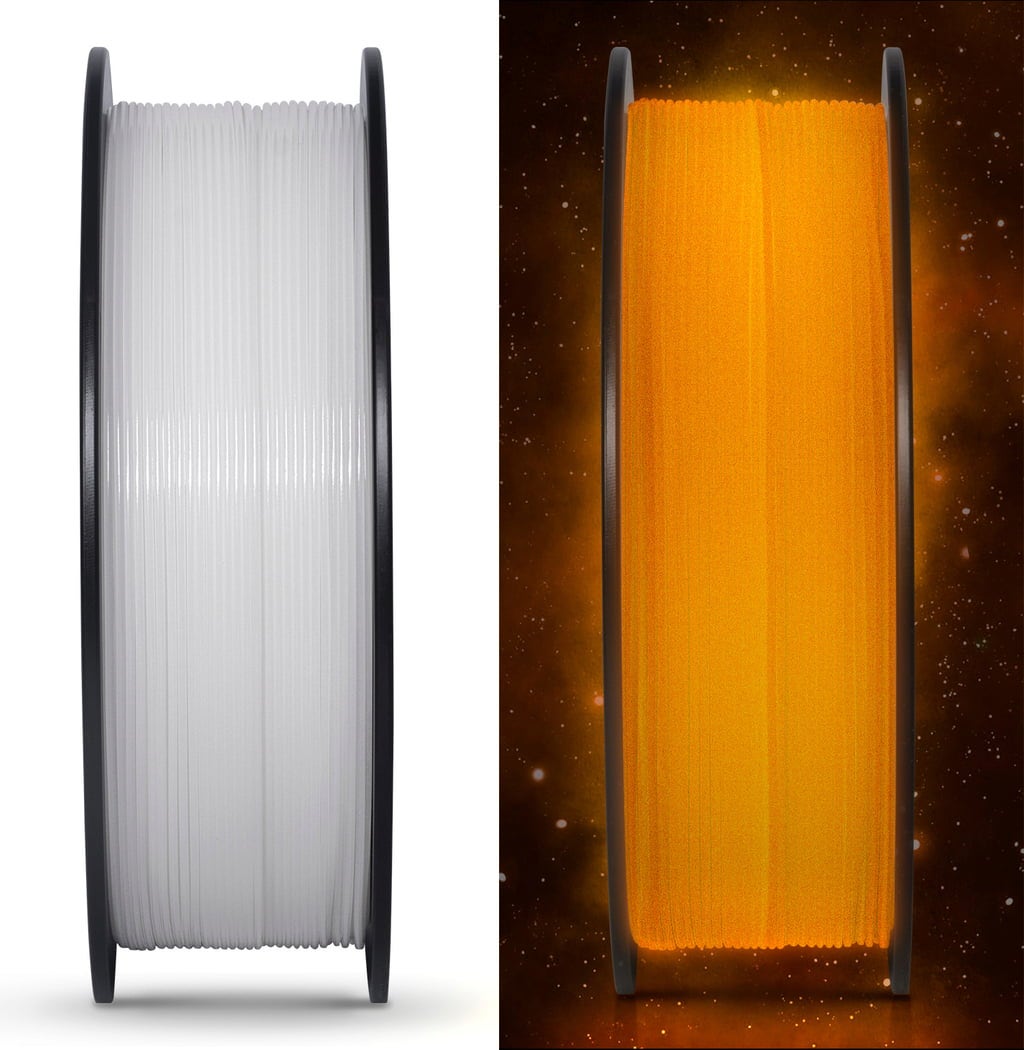 Cu PLA Luminous de la GEEETECH aduci lumina în întuneric la propriu! Acest filament conține particule fosforescente care, după încărcare de la lumină, strălucesc magic în întuneric. O expunere scurtă de doar 30 de minute la lumina soarelui sau sub lumina UV este suficientă pentru a transforma creațiile tale într-o strălucire fascinantă.