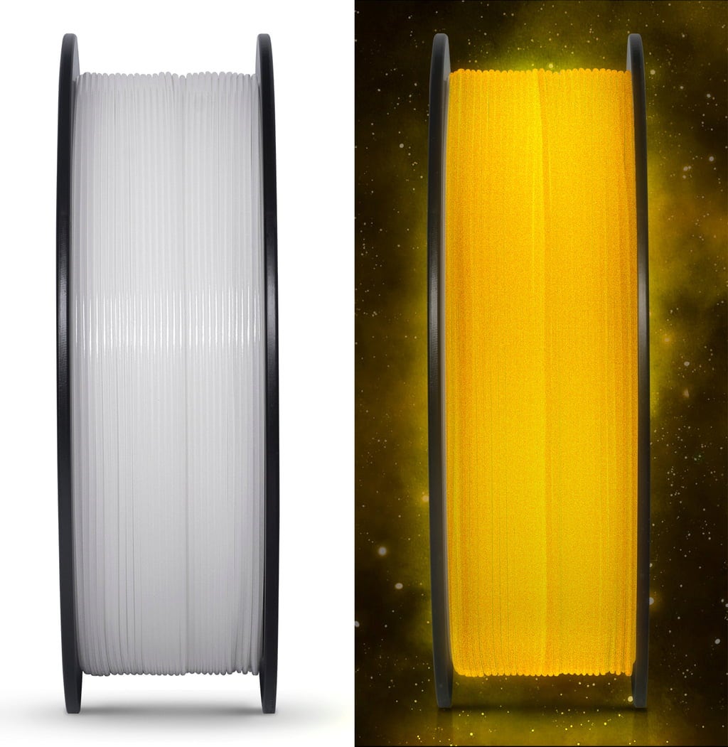 Cu PLA Luminous de la GEEETECH aduci literalmente lumină în întuneric! Acest filament conține particule fosforescente care, după încărcarea cu lumină, strălucesc magic în întuneric. Este suficientă o scurtă expunere de doar 30 de minute la lumina soarelui sau sub lumină UV pentru a scufunda creațiile tale într-o strălucire fascinantă.