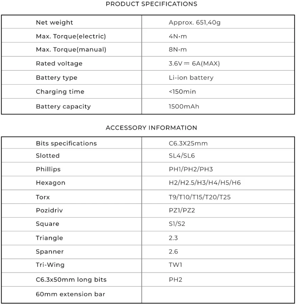 - 1 x Electric Screwdriver, 3,6V