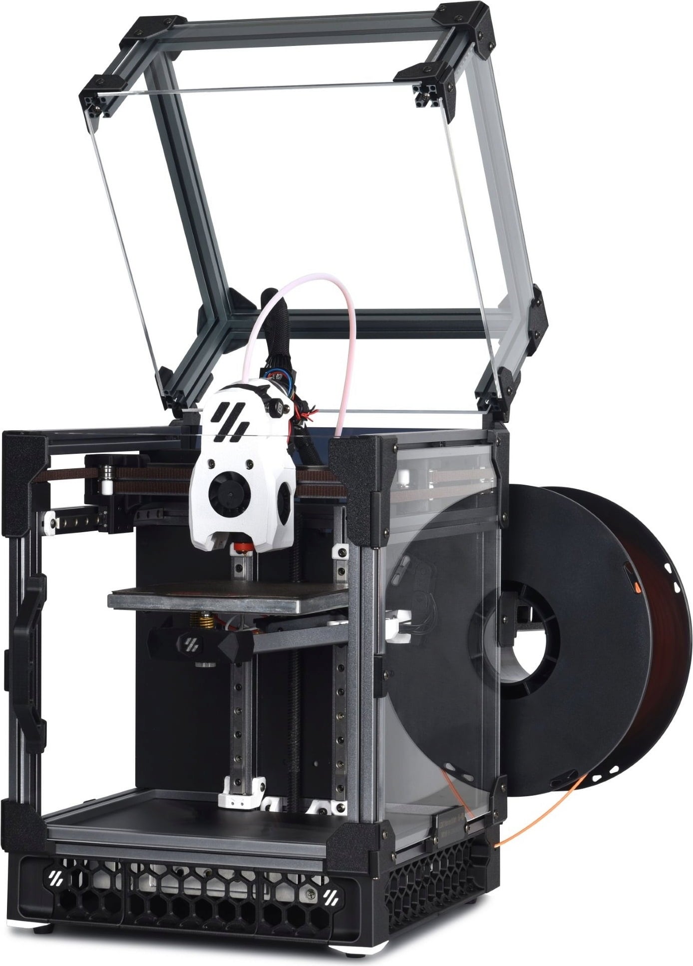 Datorită colaborării strânse cu E3D, LDO Motors a reușit să își doteze kiturile Voron cu E3D Revo Voron Hotend. Radiatoarele de culoare albastră subliniază designul Voron!