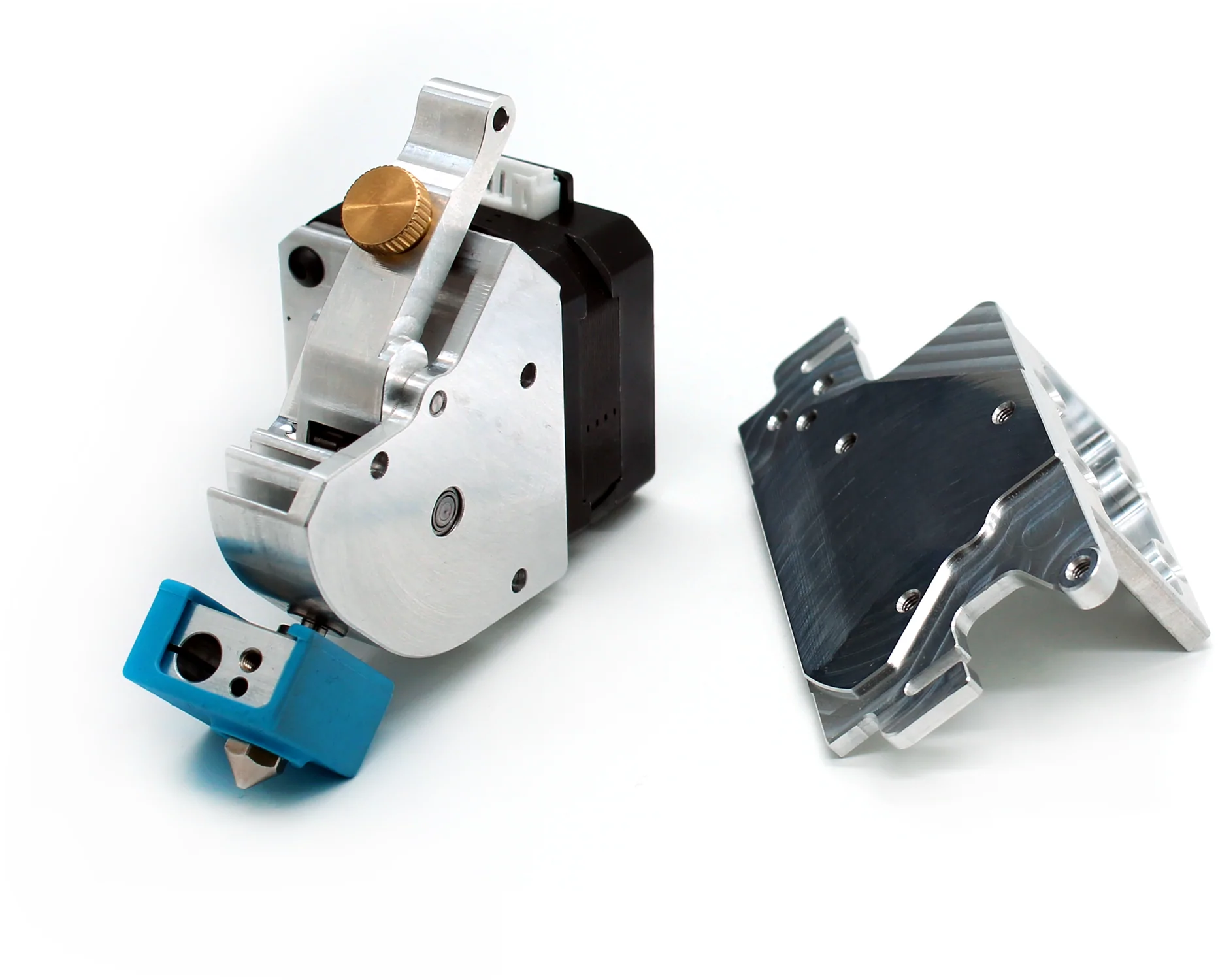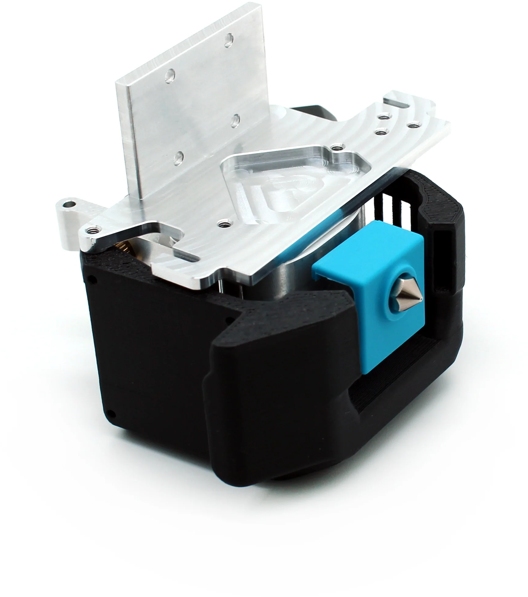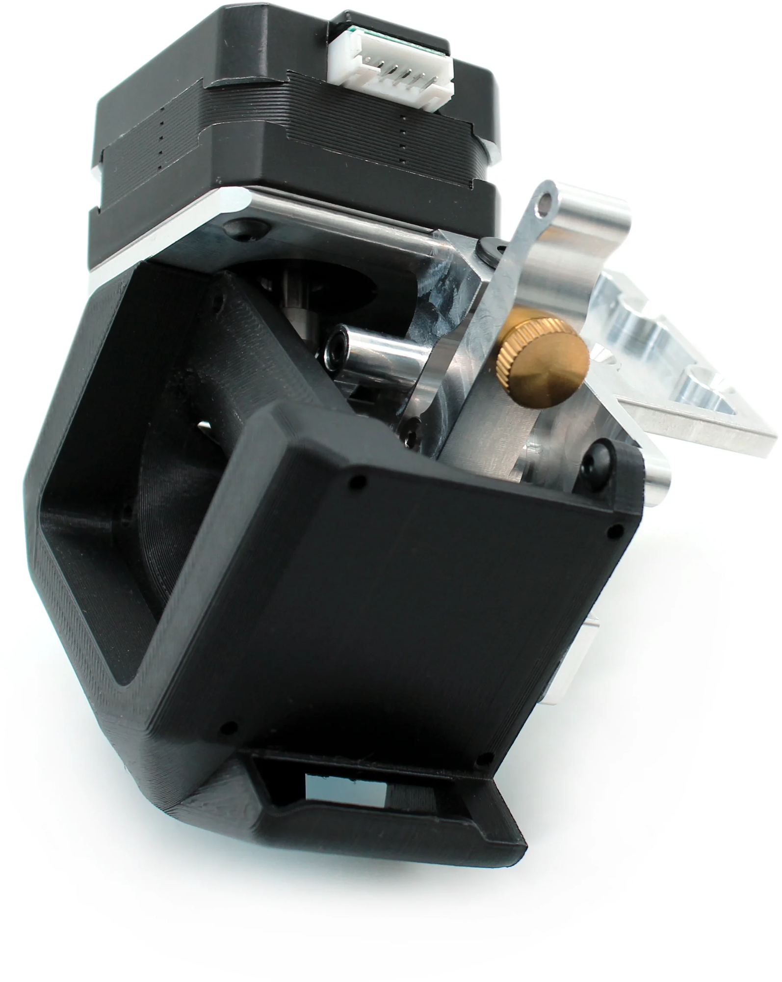 Extruderul dispune de un design Bevel Gear cu un traseu scurt al filamentului de mai puțin de 41 mm! Designul compact al extruderului cu un sbunc reduse este permis datorită poziționării unice a motorului, ceea ce crește de asemenea rigiditatea sistemului.