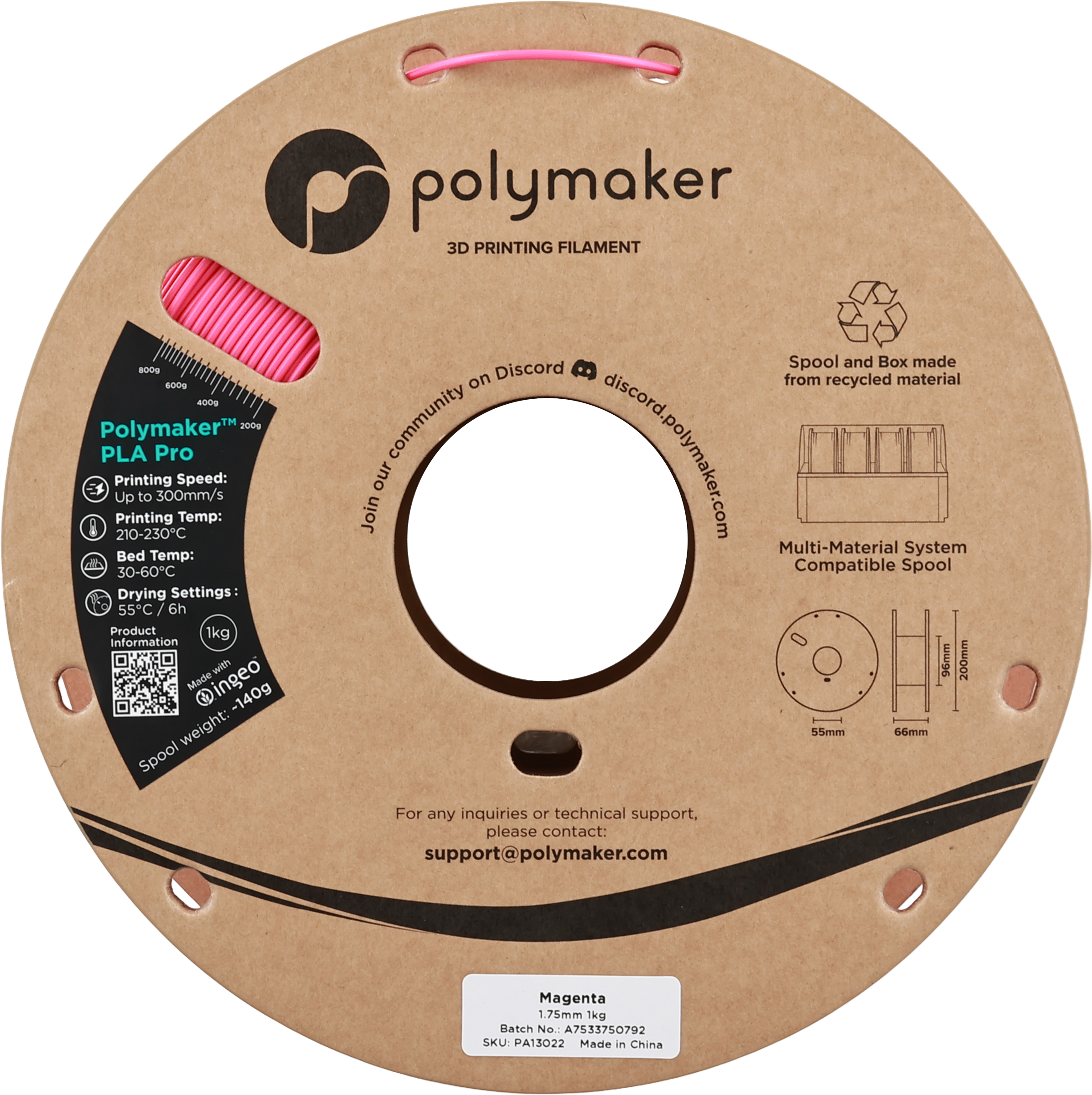 Polymaker PLA Pro Magenta, 1,75 mm / 1000 g