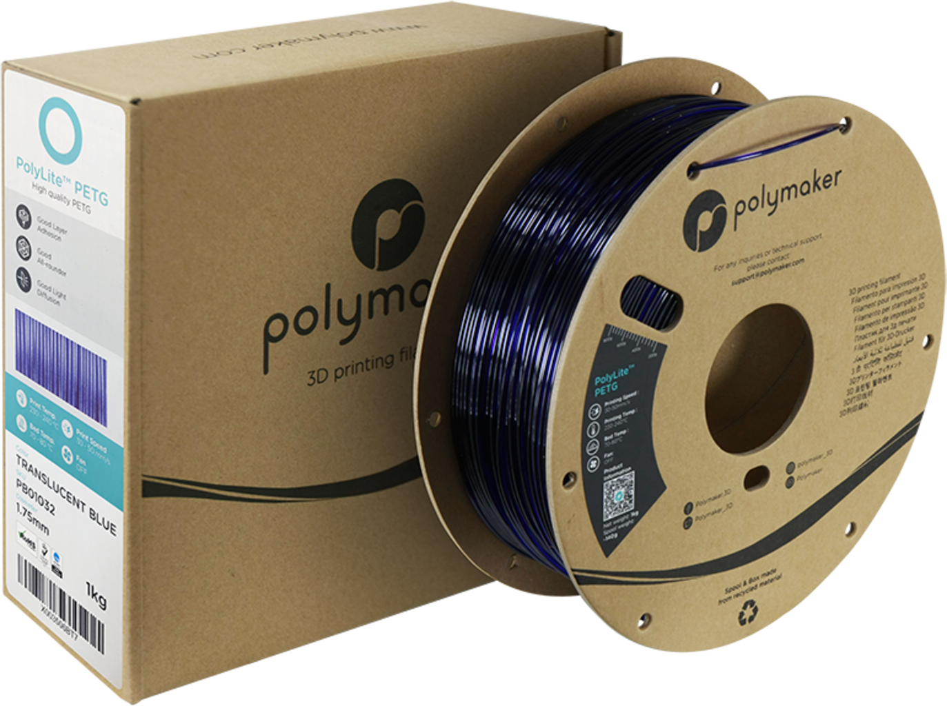Polymaker PolyLite PETG Translucent Blue, 1,75 mm / 1000 g