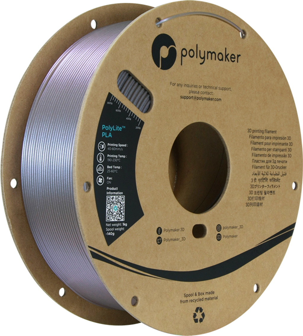 PolyLite PLA de la Polymaker este un filament PLA de înaltă calitate și ușor de imprimat, bazat pe un PLA cu greutate moleculară mare de la Natureworks. Materialul se remarcă prin stabilitate și fiabilitate ridicată; datorită tehnologiei Jam-Free de la Polymaker, rezistența la căldură a filamentului este, de asemenea, crescută.