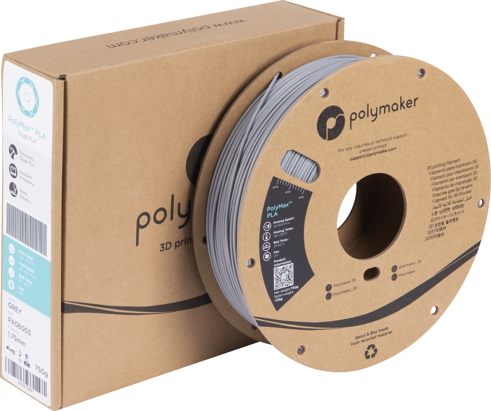 Polymaker PolyMax PLA Gray, 1,75 mm / 750 g