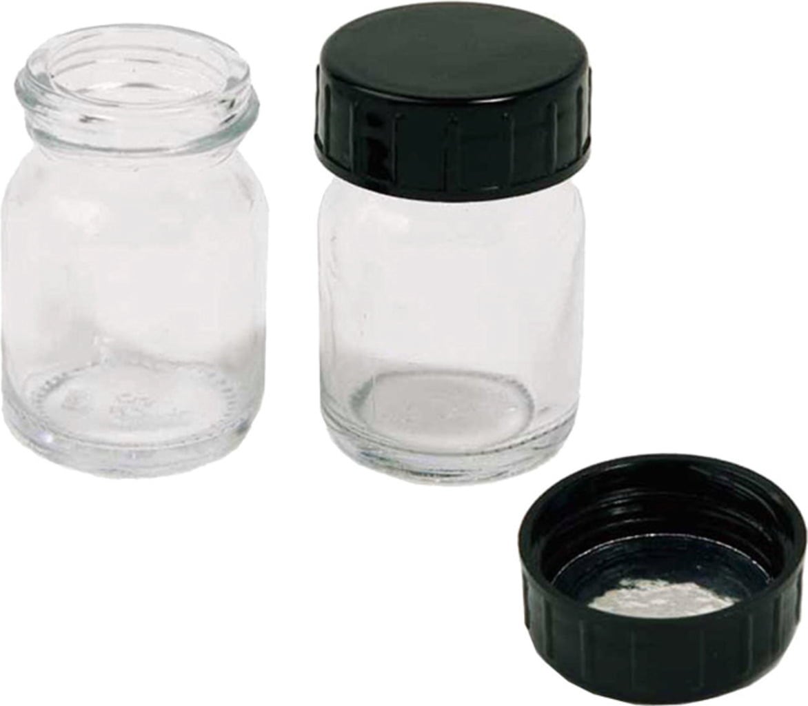1x borcan de sticlă pentru 25 ml conținut, inclusiv capac cu șurub. Potrivit pentru depozitarea culorilor sau pieselor mici.