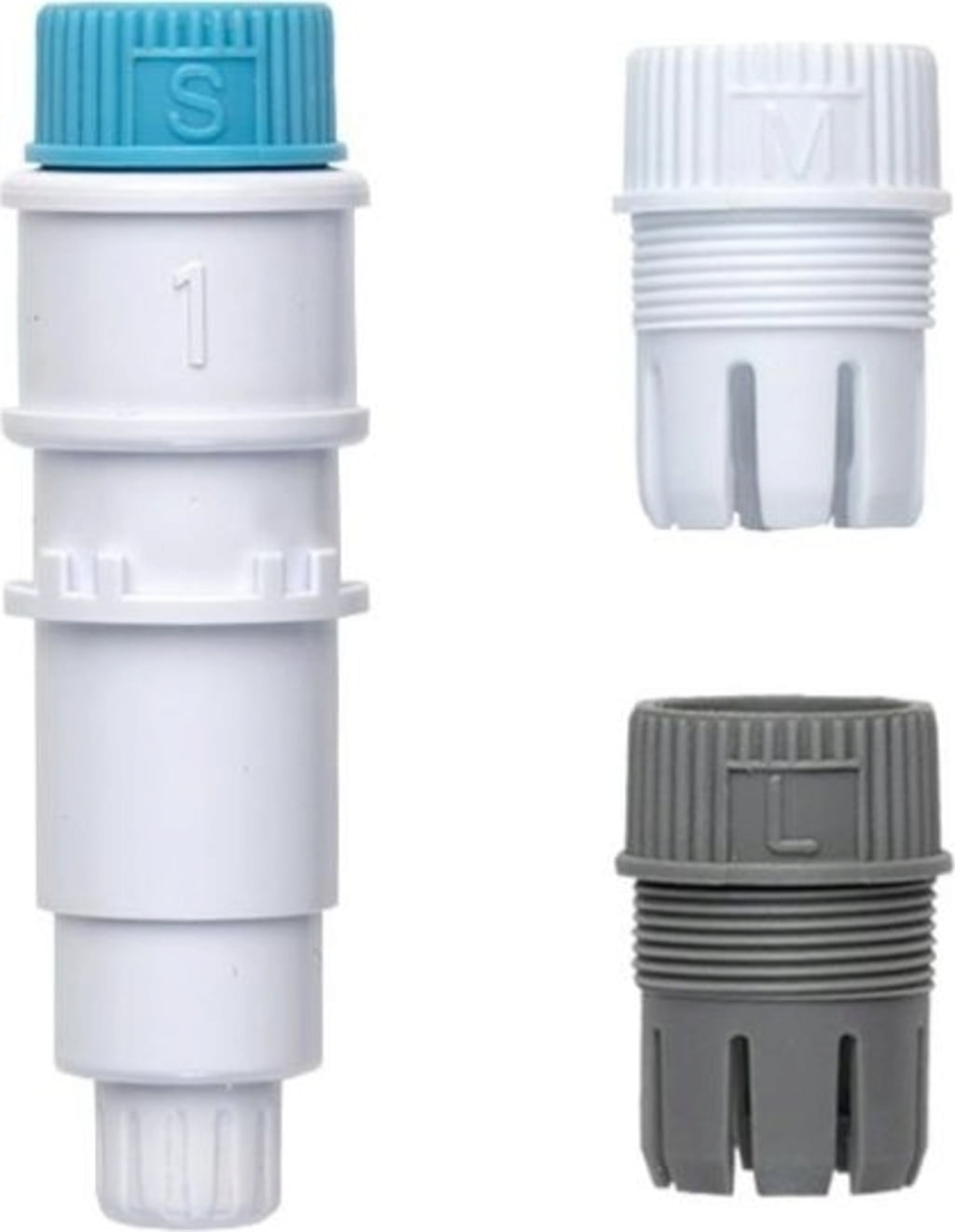 - 3 x Adaptoare pentru diferite dimensiuni ale pixului (albastru pentru pixuri mici, alb pentru pixuri medii, gri pentru pixuri mari)
