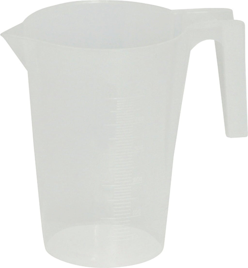 Ceașca de măsurare este realizată din polietilenă cu o scară metrică.
