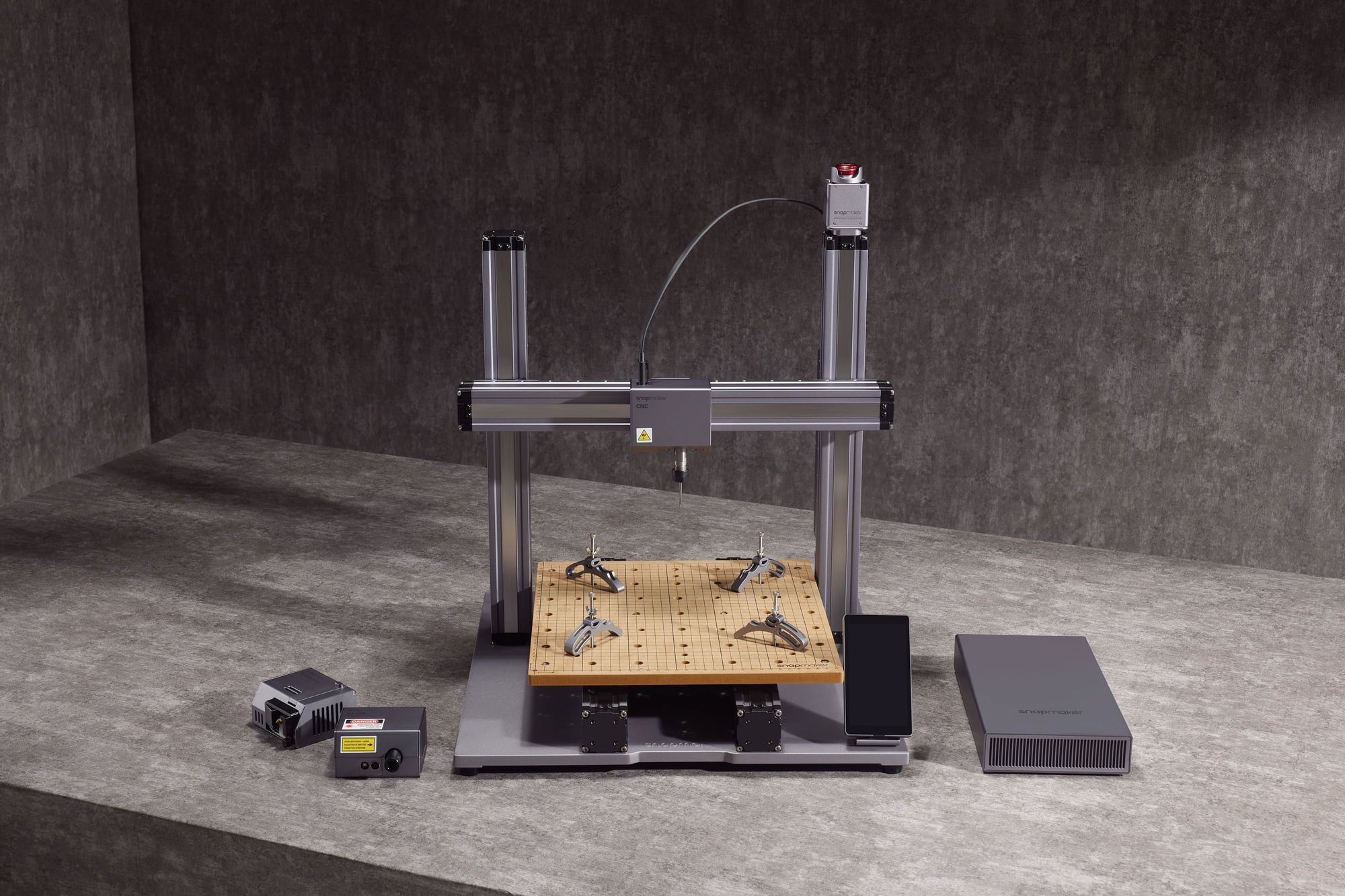 Butonul de oprire de urgență Snapmaker 2.0 oferă siguranță suplimentară pentru imprimarea 3D, gravarea cu laser și frezarea CNC. Apasă pur și simplu butonul de oprire și funcționarea va fi întreruptă.