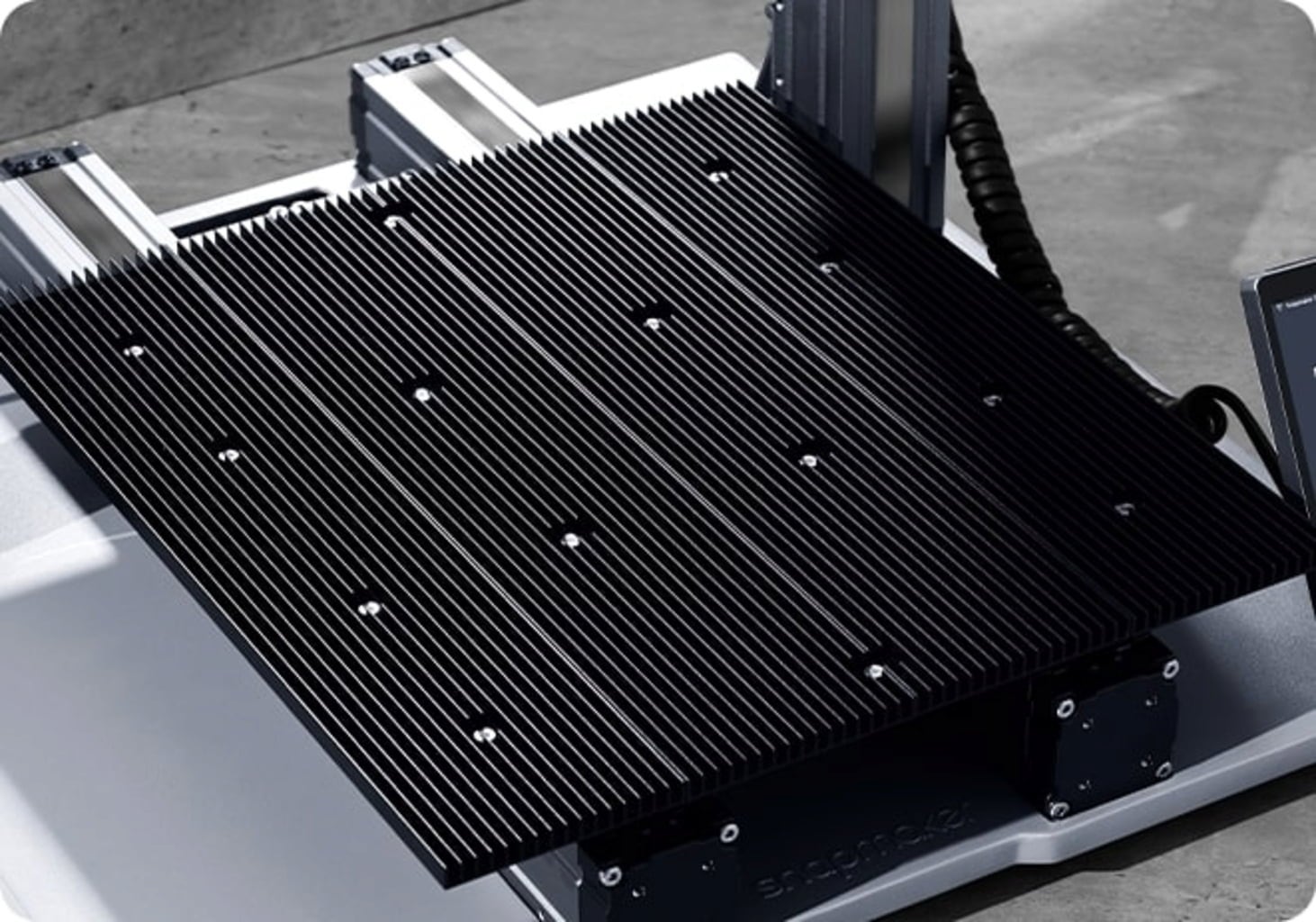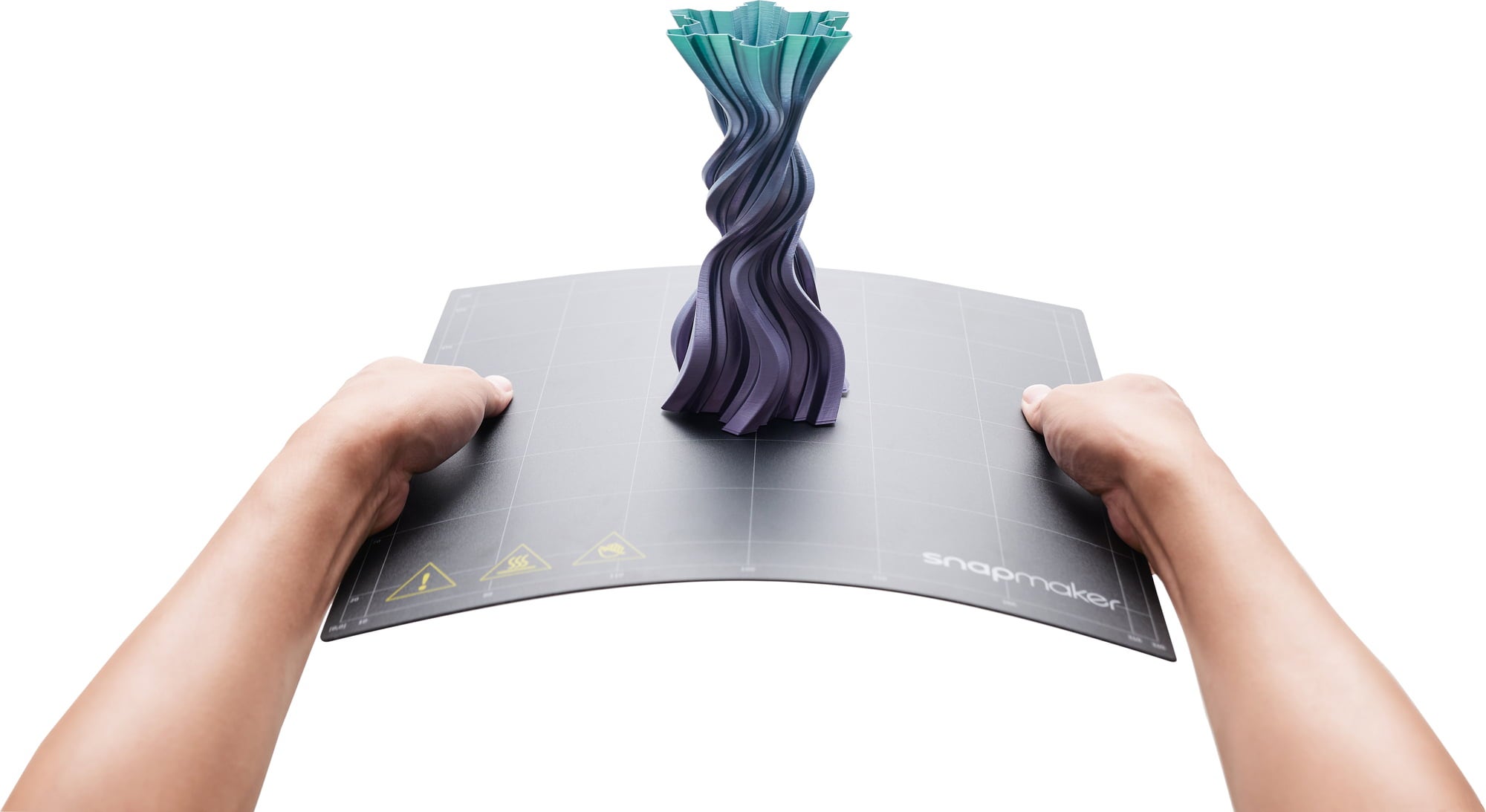 Cu Snapmaker 2.0, obții rezultate excelente cu suprafețe netede atunci când imprimi modele cu suprapuneri adânci. Importanța unui sistem de răcire adecvat este la fel de mare ca și cea a încălzirii, de aceea sistemul de răcire a fost reproiectat pentru a răci eficient imprimarea. - Platformă flexibilă