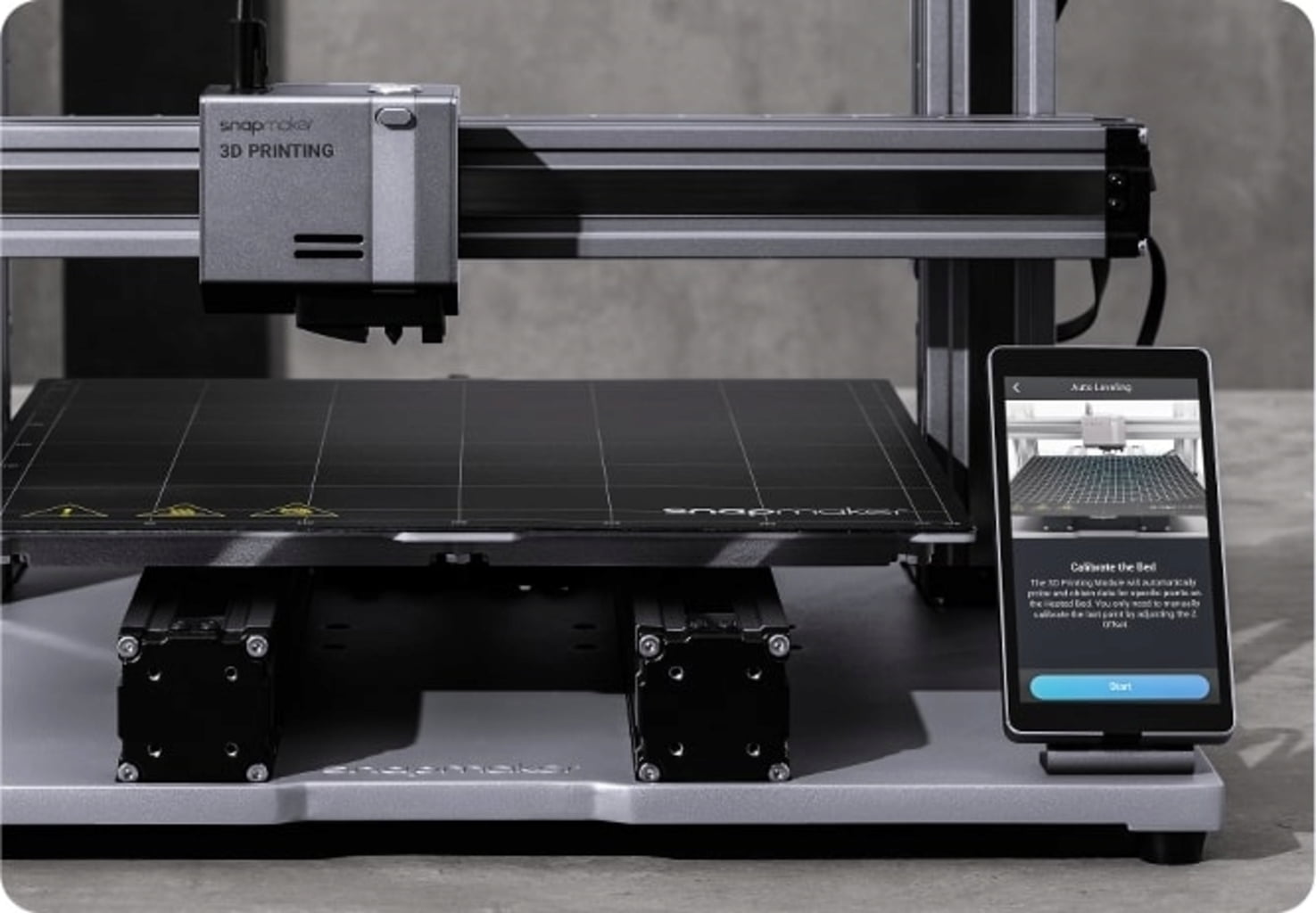 Pentru a facilita nivelarea patului de imprimare, Snapmaker 2.0 include o funcție de nivelare automată, în care un senzor de inducție scanează patul în rețea și aplică o compensare pe baza acestei scanări. Acest lucru garantează imprimarea perfectă pe un pat nivelat. - Recuperarea după epuizarea filamentului