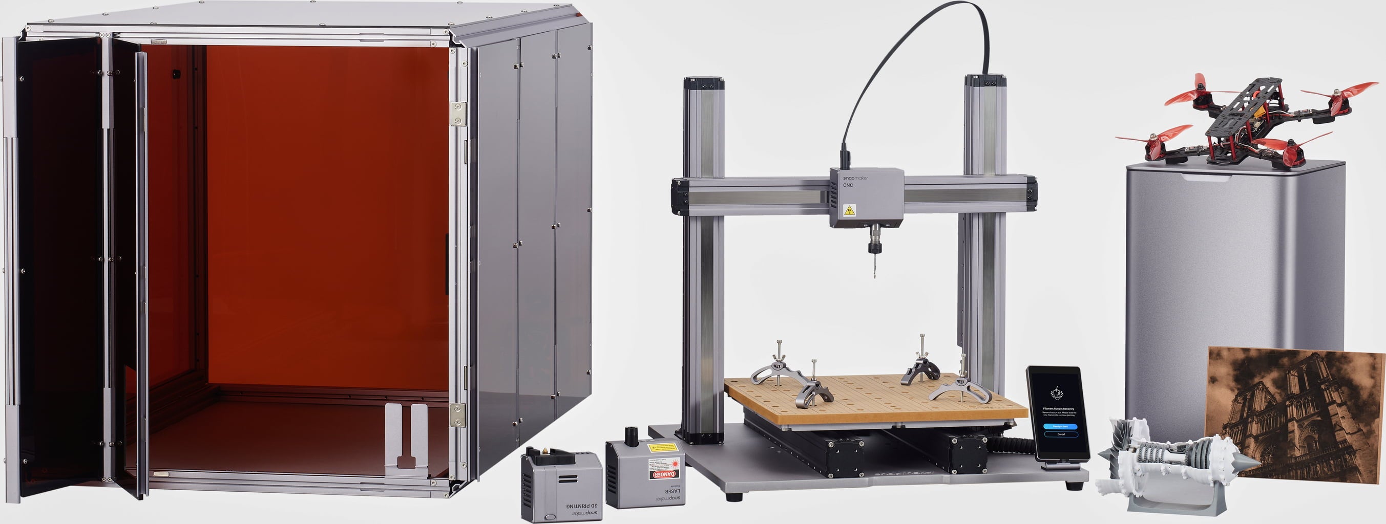 Snapmaker 2.0 este o imprimantă 3D inovatoare 3-în-1, care, pe lângă imprimarea 3D, se remarcă prin capacitățile sale de gravură cu laser și frezare CNC. Este astfel echipată cu tot ce este necesar pentru a da frâu liber creativității tale.