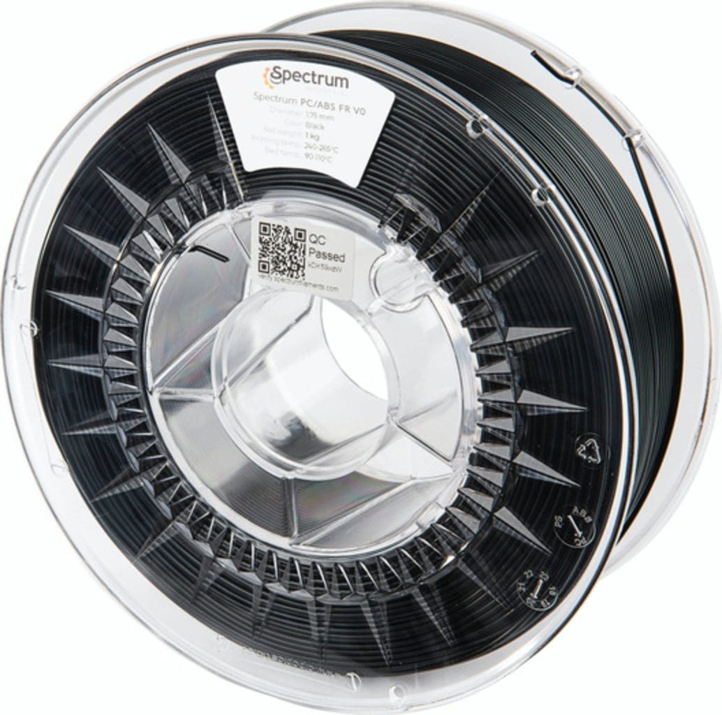 Spectrum PC/ABS FR V0 este un filament profesional, fără halogeni, de înaltă performanță, pentru aplicații ce impun cerințe ridicate privind protecția la incendiu, stabilitatea și calitatea suprafeței. Materialul îndeplinește clasificarea UL-94 V0, fiind auto-stingător, ceea ce îl face deosebit de potrivit pentru componentele unde siguranța este esențială.