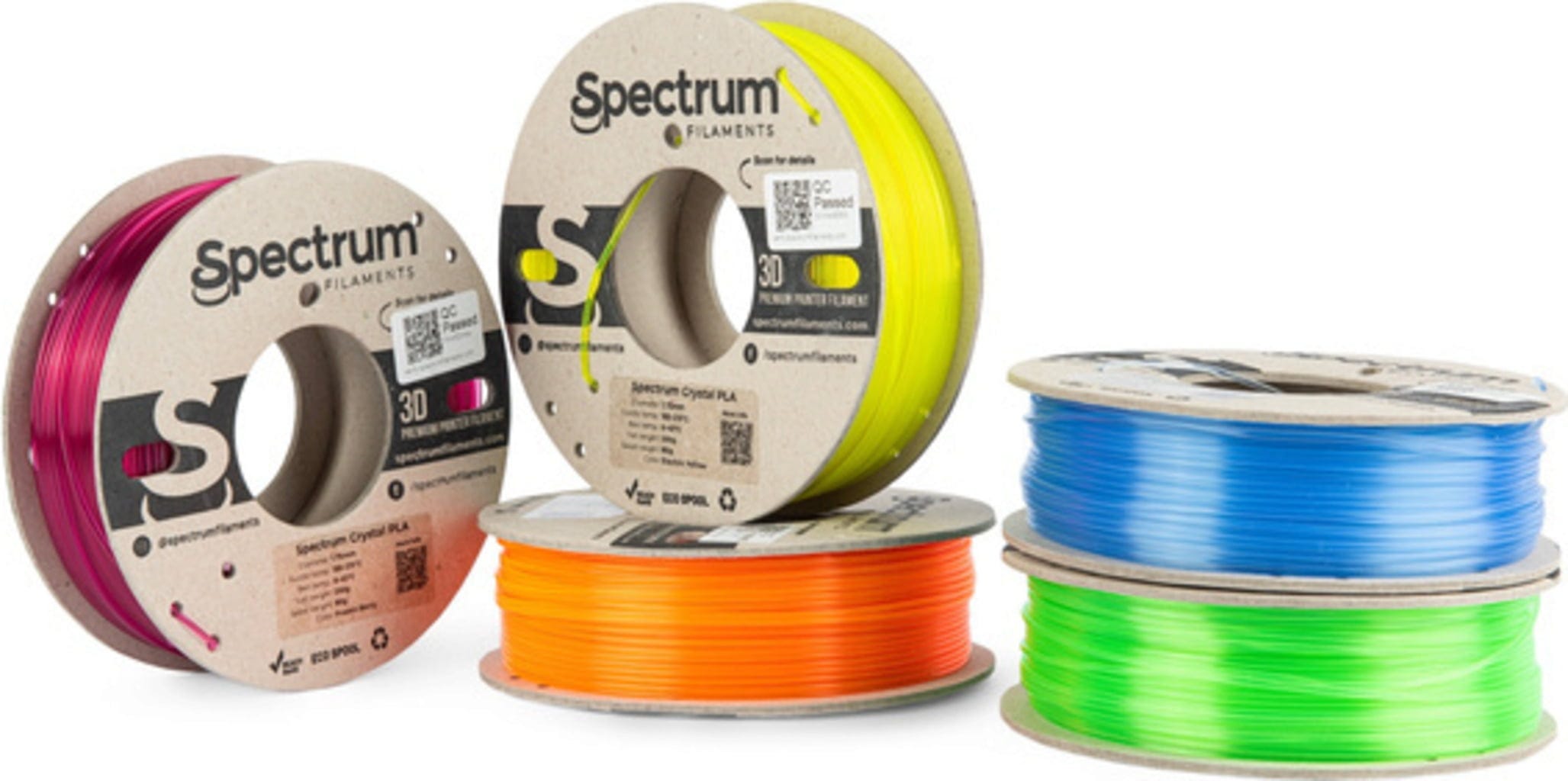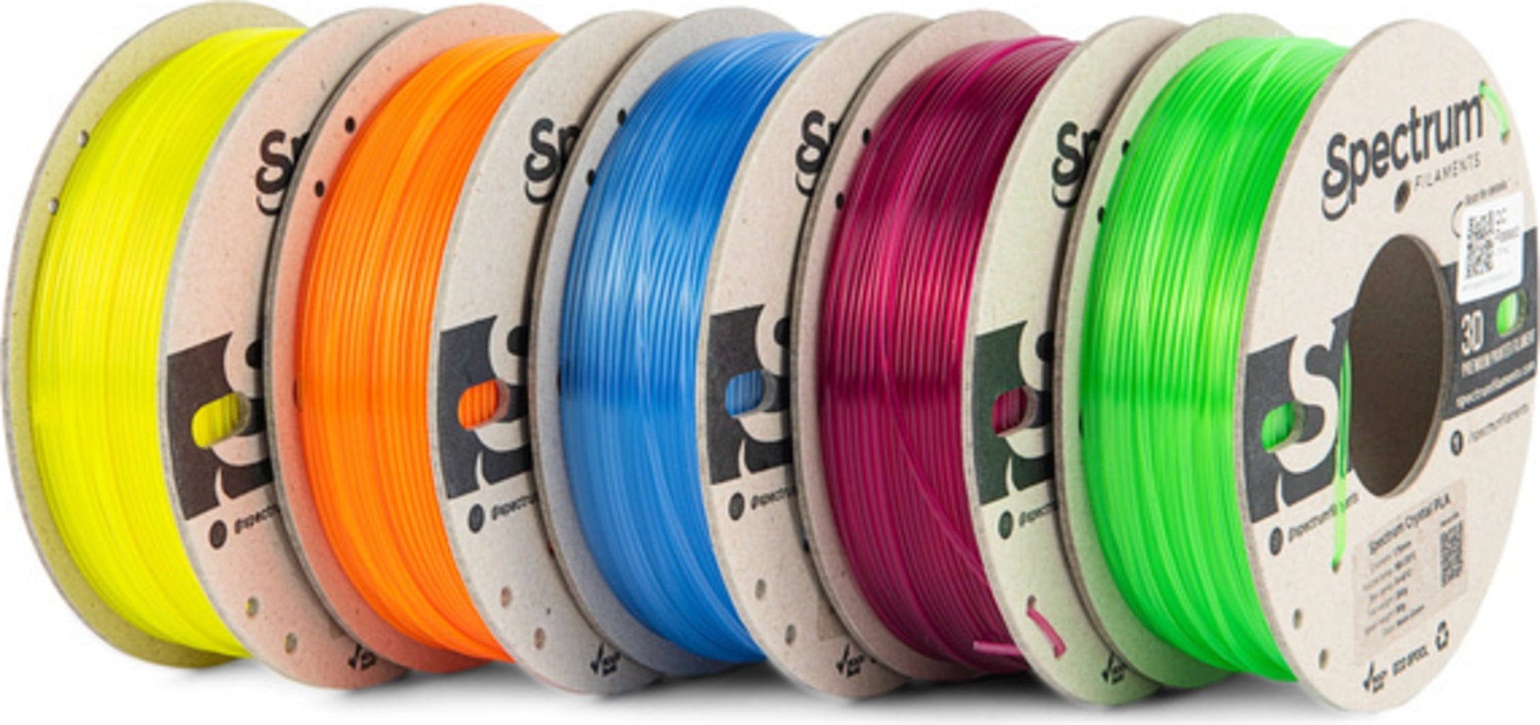 Toate filamentele incluse sunt realizate din PLA cu grad ridicat de cristalinitate și impresionează prin claritate optică ridicată și un flux material stabil și uniform.