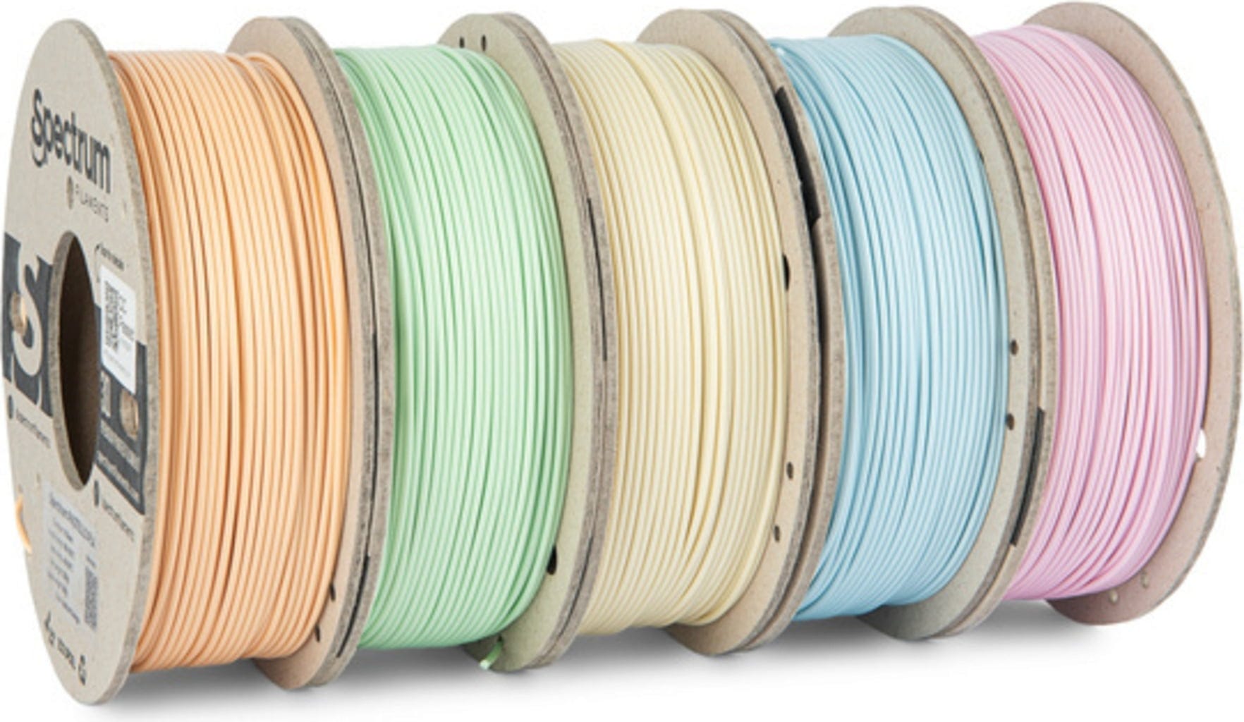 Cu Spectrum 5er-Set Pastello PLA aduci o echilibrare perfectă între culori blânde și calitate de imprimare fiabilă. Setul a fost creat special pentru a-ți oferi cea mai mare libertate de design – fără a fi nevoie să cumperi mai multe bobine întregi de la un singur ton de culoare.