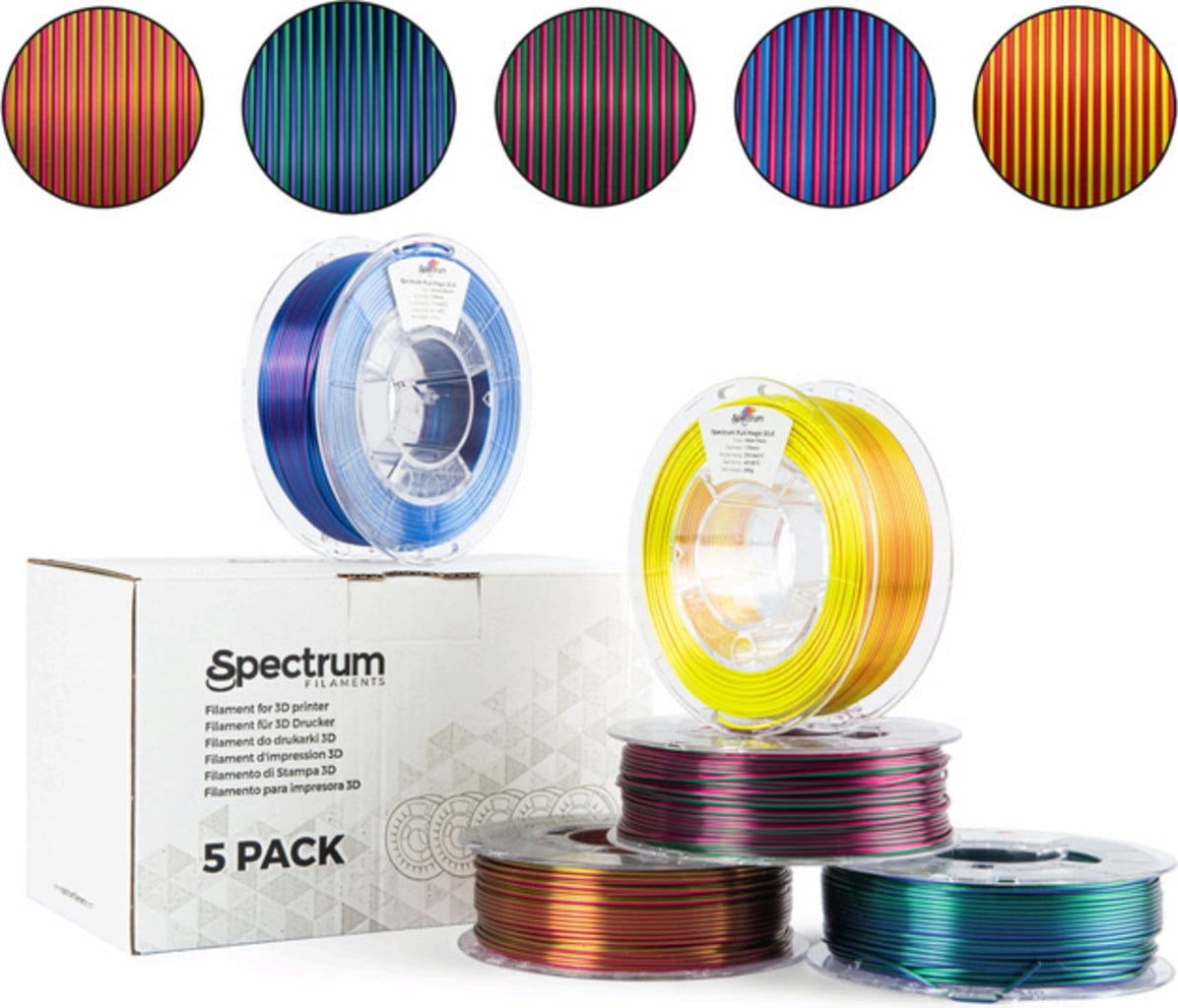 Spectrum Set de 5 PLA Magic Silk, 1,75 mm