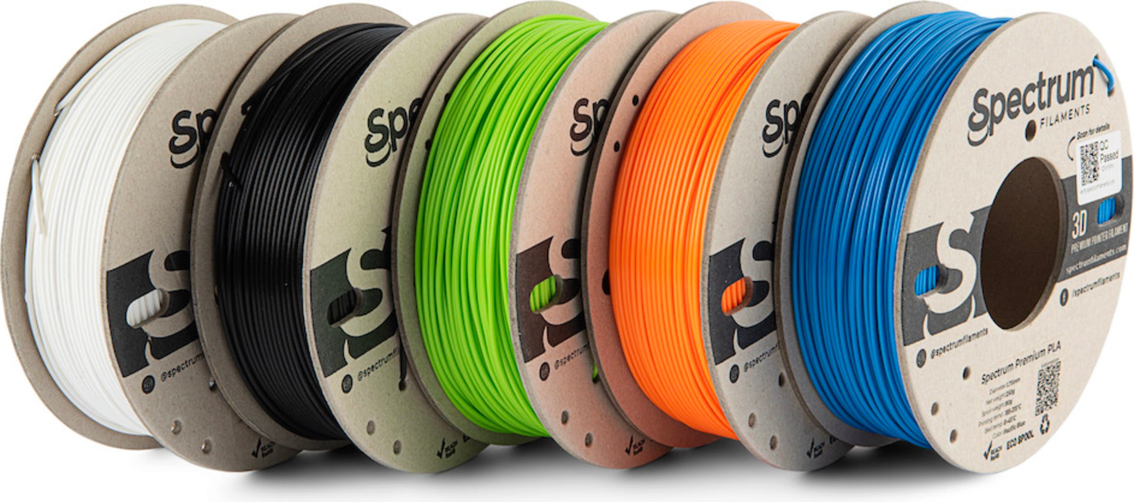 Toate filamentele sunt pe bobine din carton ecologic.