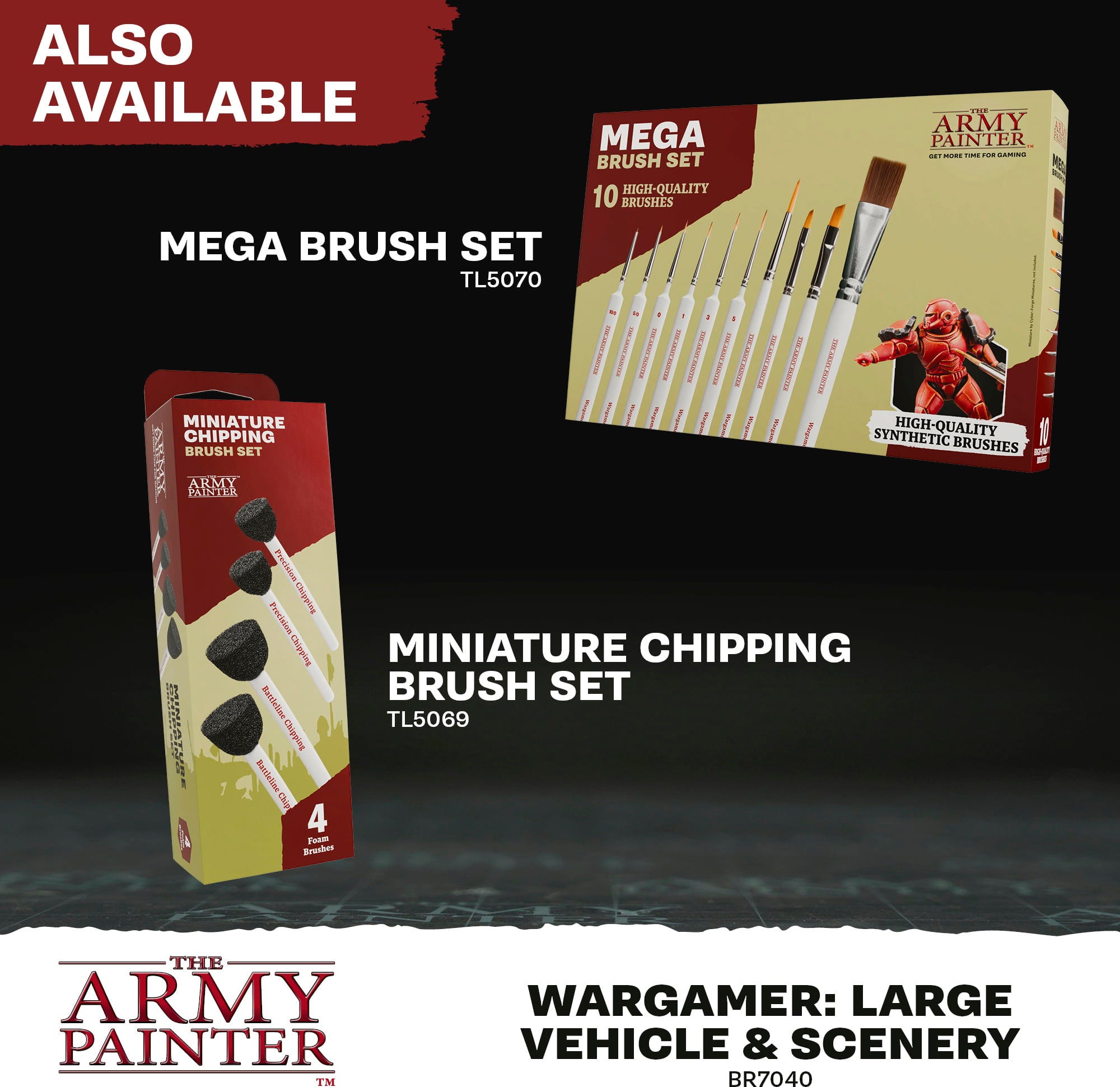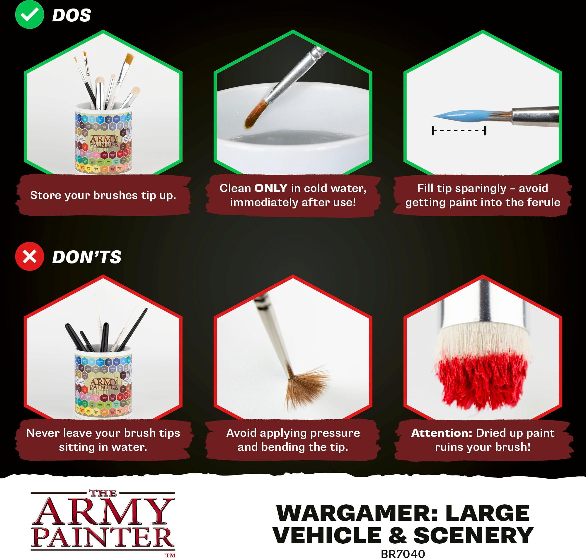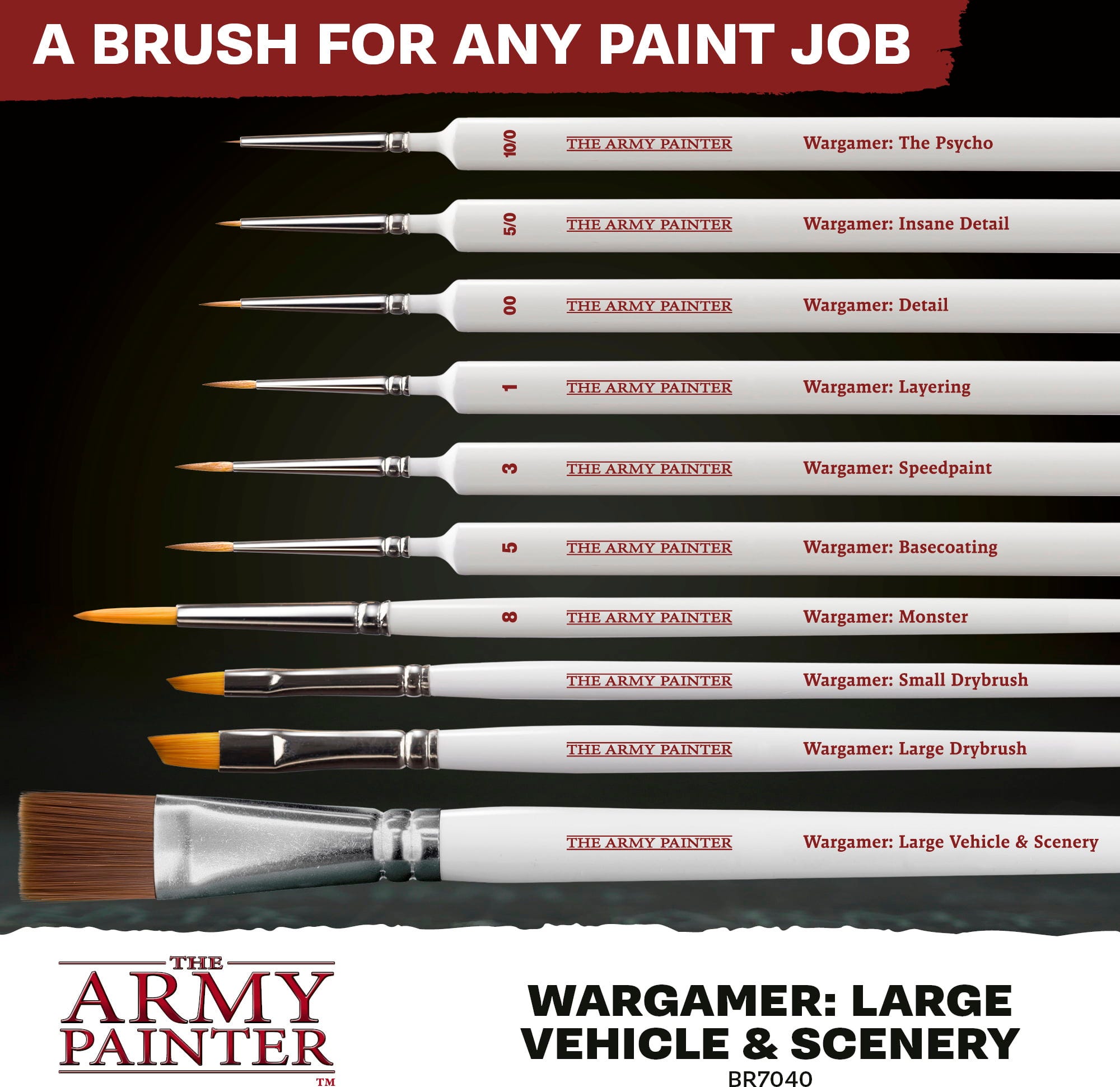 Wargamer Brushes de la The Army Painter stabilesc standarde în pictura miniaturilor. Datorită tehnologiei inovatoare Bionic Bristle din fibre sintetice, aceste pensule sunt concepute special pentru tehnicile moderne de pictură, cum ar fi Speedpaint și aplicațiile One-Coat.