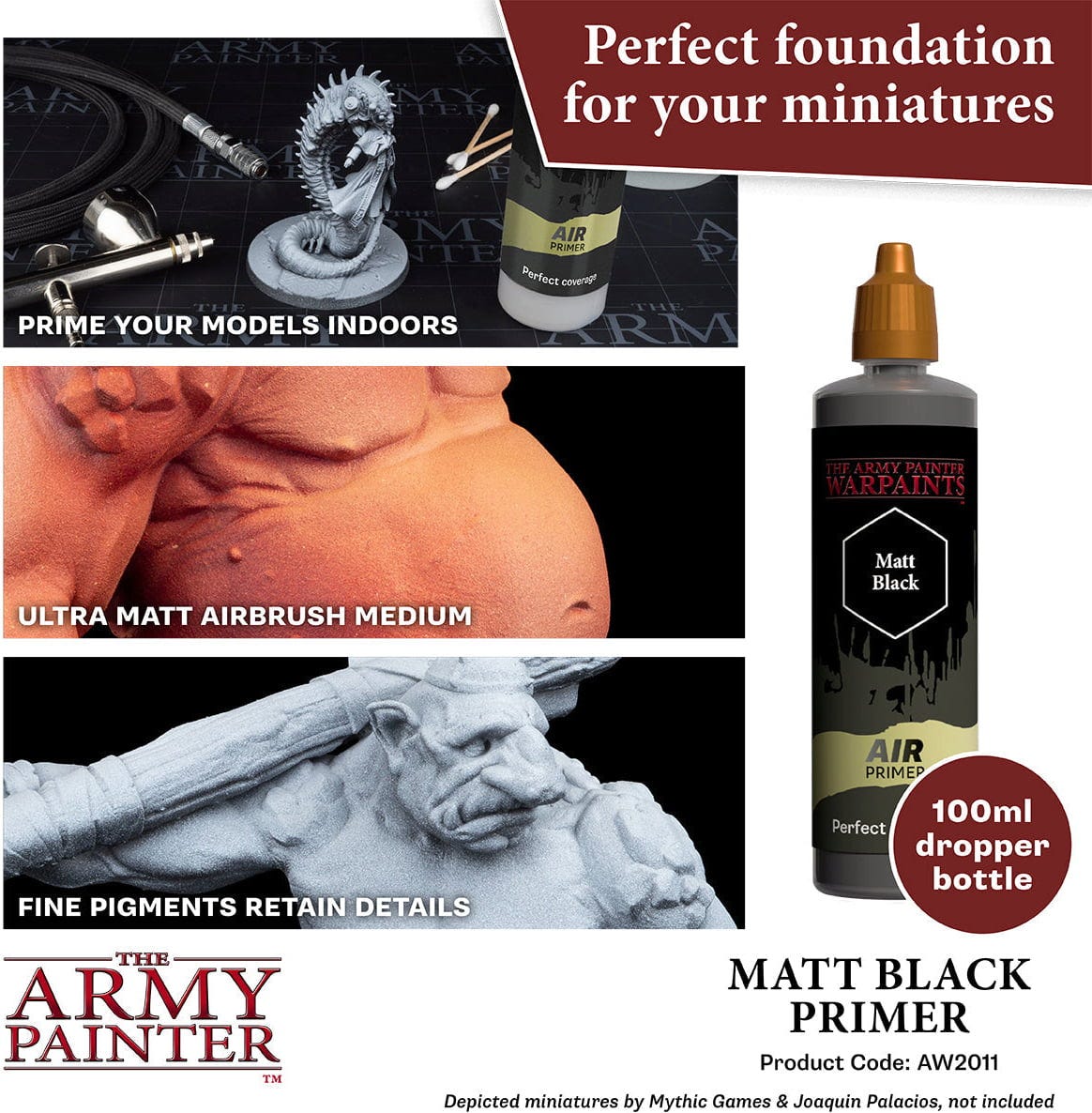 Cu The Army Painter Airbrush Primer creezi baza ideală pentru orice miniatură. Formula special dezvoltată asigură o aplicare fină și uniformă, formând un strat ultramat care nu ascunde detaliile.