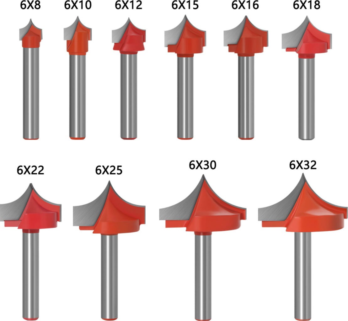 Acesta este un set de 10 bucăți de freze profil de 6 mm de la Two Trees. Frezele au un mâner din oțel și o lamă ascuțită și durabilă din oțel cu tungsten.