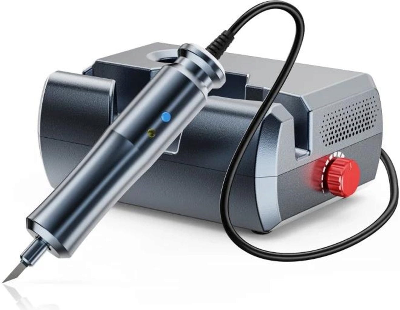 Desigur, Two Trees s-a gândit și la manevrarea practică: pentru mâner există două poziții de depozitare flexibile, astfel încât să poți plasa cutterul în așa fel încât să se potrivească cel mai bine fluxului tău de lucru. Cablurile moi și prietenoase cu pielea asigură că nimic nu deranjează, nu trage sau nu stă în calea activității.