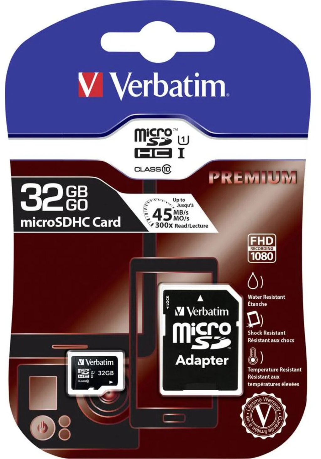 Cardul de memorie microSD Verbatim este compatibil cu toate dispozitivele care au un slot microSDHC sau SDHC/SDXC (un slot SDHC necesită un adaptor SDHC, care este inclus în pachetul de livrare)